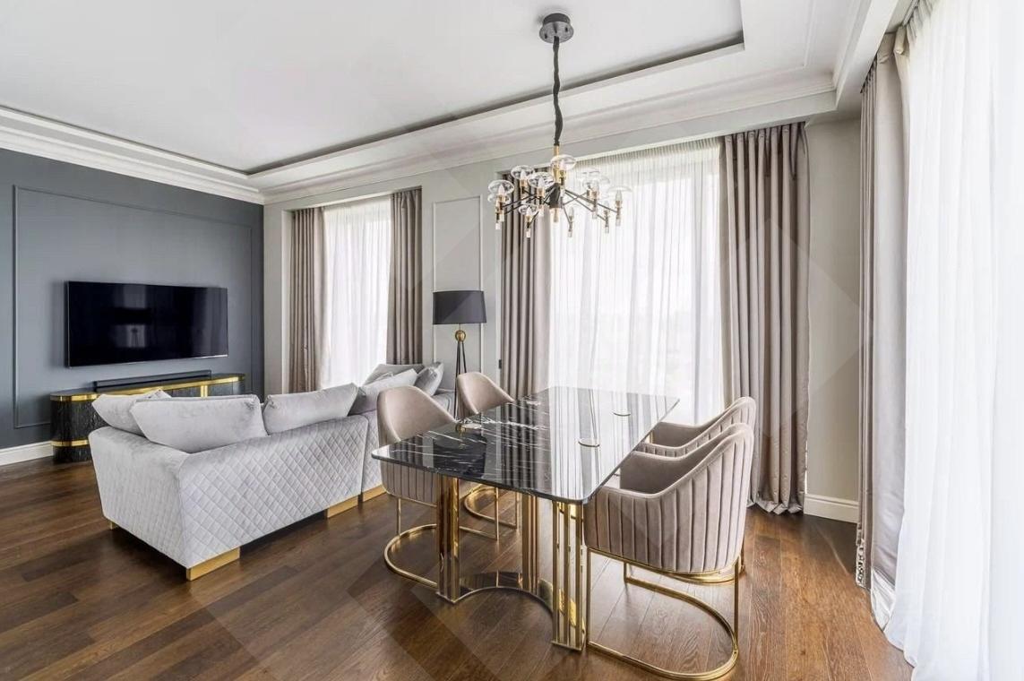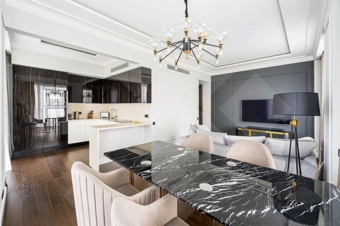 Выполнен дизайнерский ремонт в стиле Classic dark с использованием премиальных материалов. Квартира полностью укомплектована мебелью и техникой.