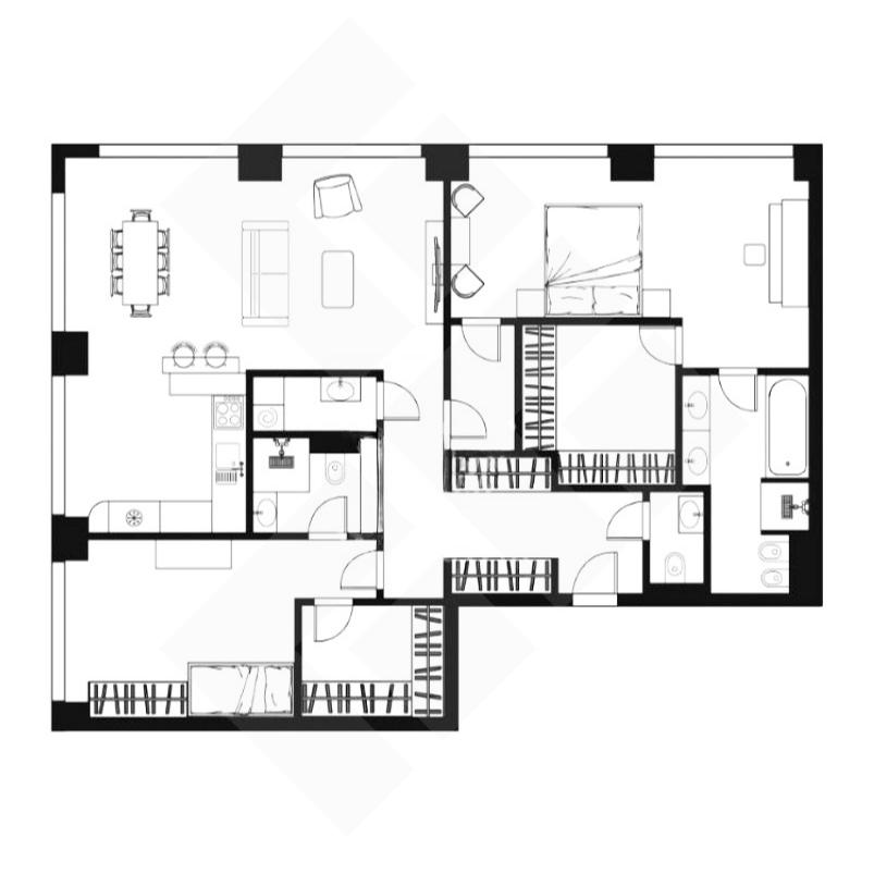 Функциональная планировка: кухня-гостиная, мастер-спальня с собственной гардеробной и ванной, вторая спальня со своим санузлом, гостевой санузел, гардеробная, кладовая, прихожая.