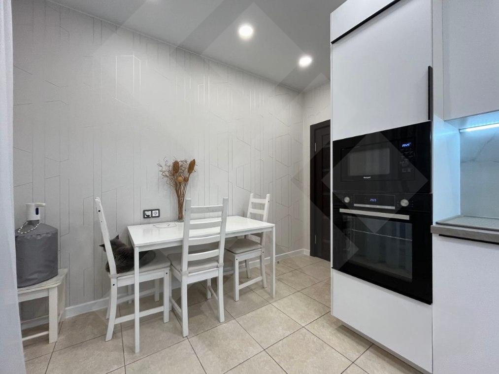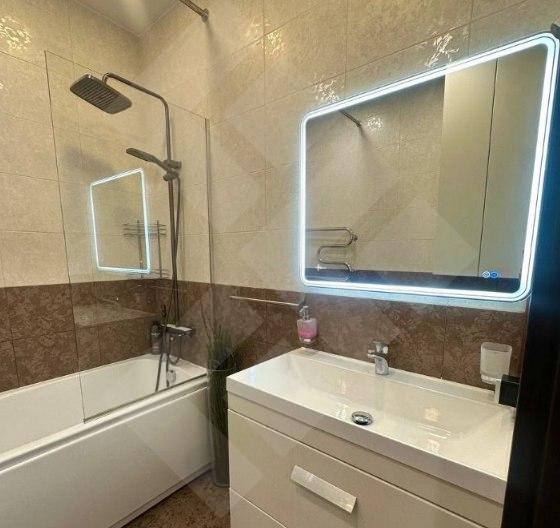 Наполнение: Встроенная кухня (ПММ, варочная панель, СВЧ, кофемашина), шкафы-купе, оборудованная гардеробная. В ванной — сантехника премиум-класса, зеркало с подогревом.