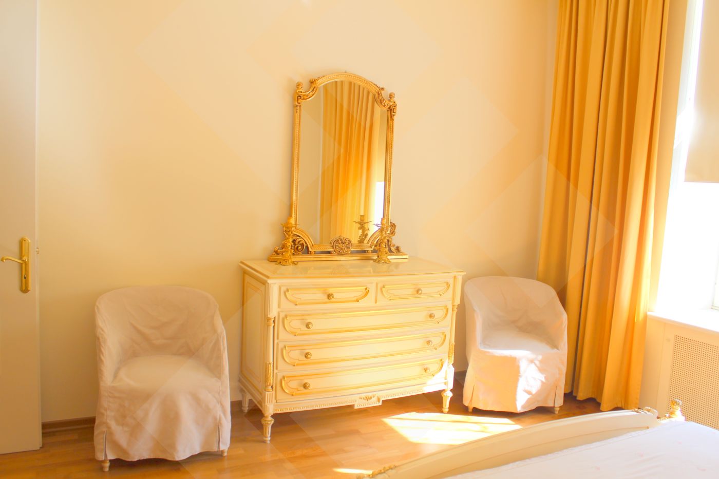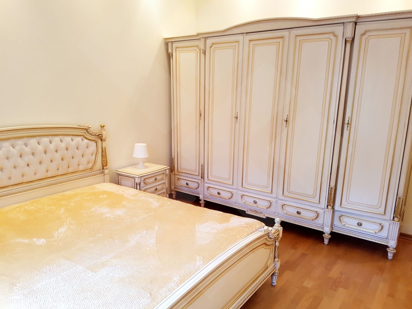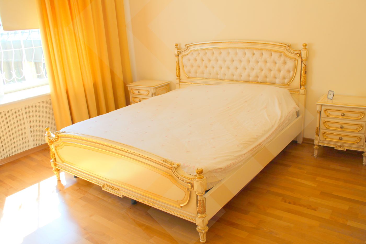 ID:1554 Агенту бонус!Предлагается четырехкомнатная квартира. Выполнен качественный ремонт. Встроенная кухня оснащена современной бытовой техникой от ведущих мировых производителей. Планировка: кухня-столовая (22м), гостиная (50м), три спальни (25-25-25), два санузла, гардеробная, лоджия. Квартира полностью меблирована. Пол: паркет (массив дуба), плитка (подогрев). Окна спален во двор. Высота потолков 3,5м. Презентабельная входная группа. Двор огорожен.