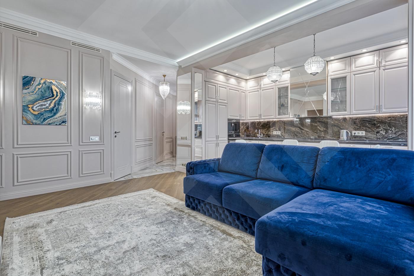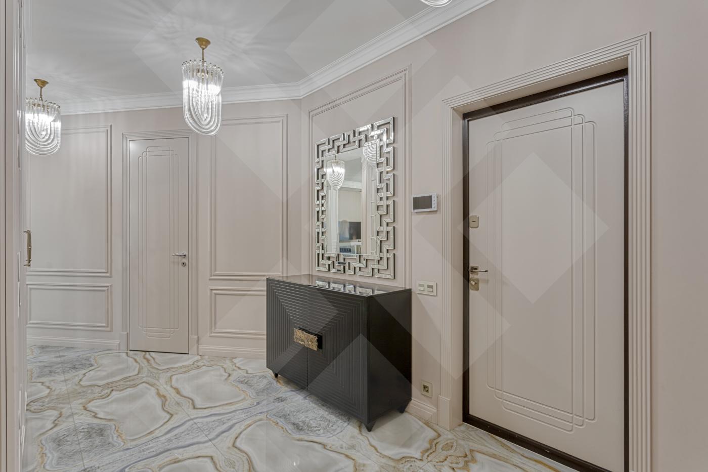 На продажу предлагается дизайнерская 4-х комнатная квартира в доме бизнес класса. Дизайн проектом предусмотрено: Просторная кухня- гостиная, 3 изолированные спальни, гардеробная и кладовая комната, 2 полных санузла. В квартире выполнена качественная отделка с использованием дорогих натуральных материалов, а также полностью укомплектована всей необходимой мебелью, бытовой техникой от известных мировых брендов (Bosch и Miele). Сантехника Villeroy&Boch и Jacob Delafon. В данной квартире очень грамотно спланировано пространство, что дает ощущение уединения и спокойствия. А главным центром притяжения для всей семьи является большая, светлая и очень красивая гостиная из которой открывается панорамный вид на Сити и МГУ. Установлена система канального кондиционирования Fujitsu и система приточной вентиляции Breezart. Радиаторы от немецкого производителя oventrop. Система контроля протечки воды Нептун. Межкомнатные двери итальянского производителя Ital-on.
