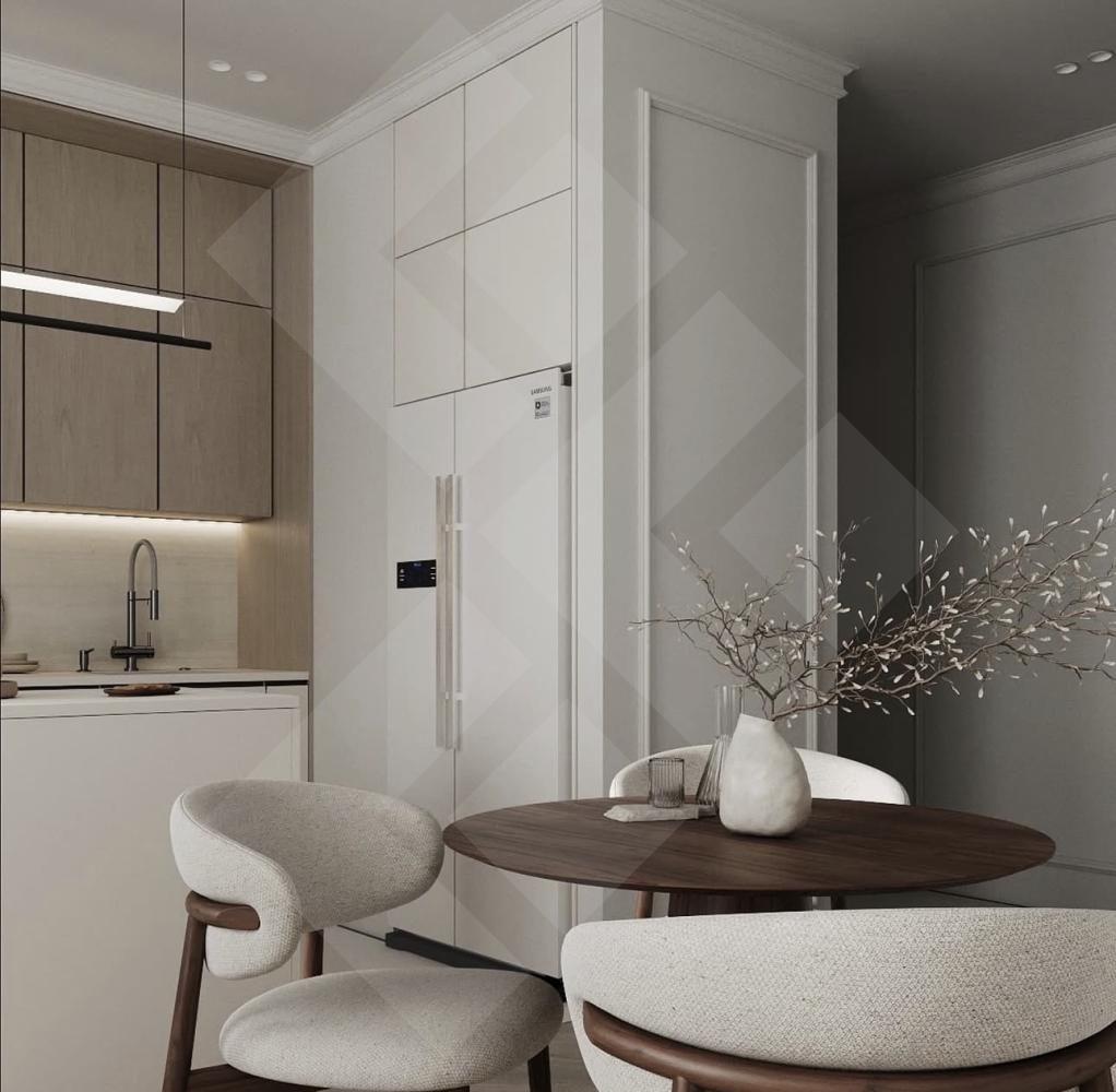 Потолки высотой 3 м. Стены —краска Johnstones, декоративная штукатурка, стеновые панели; полы — керамогранит, с/у-керамогранит; теневой натяжной потолок системы Krab; двери -invisible, высотой 2,40 м; мойка- Omoikiri, сантехника- Boheme и AM.PM, столешницы - кварцит; внутрипольные конвекторы, кондиционеры Hisense, Умный дом, биометрический замок на входной двери, встроенный сейф. Различные сценарии освещения и большое количество подсветок делают квартиру еще более привлекательной.
