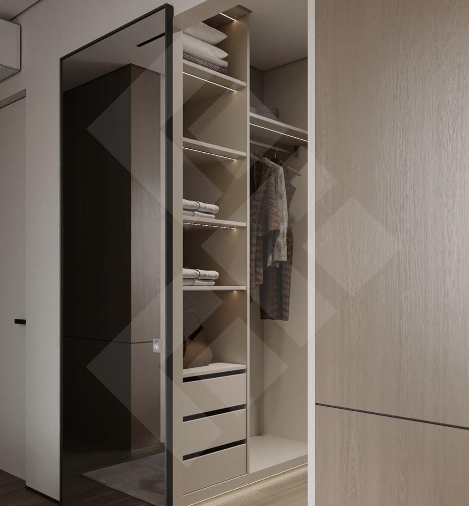 Удобное планировочное решение квартиры : просторная кухня-гостиная, уютная спальня с вместительным шкафом, гардеробная, совмещенный с/у с ванной и прихожая.
