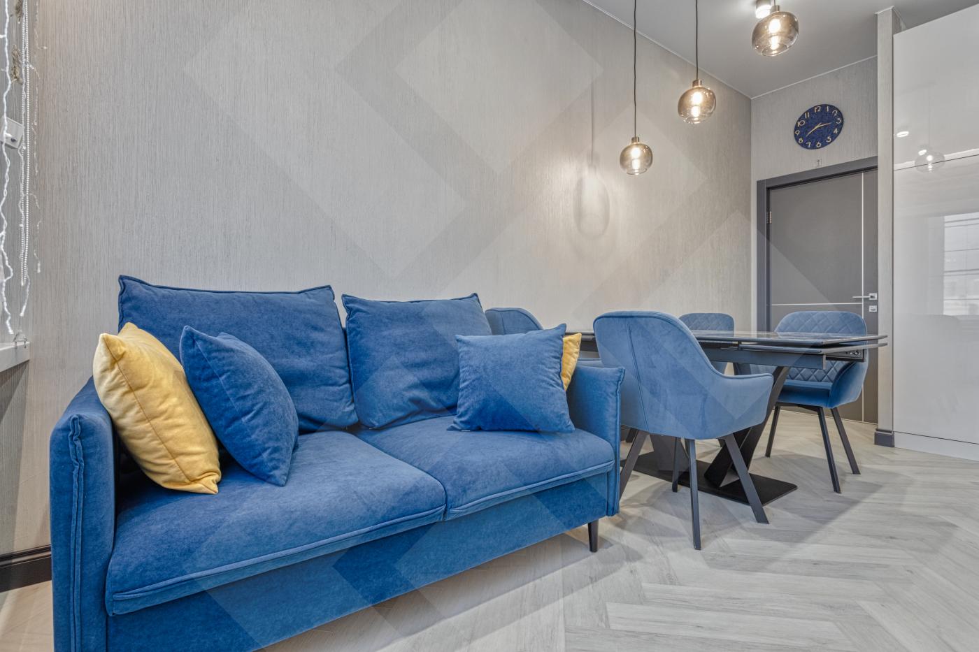 Планировка: просторная кухня-гостиная, спальня, гардеробная комната, сан. узел.