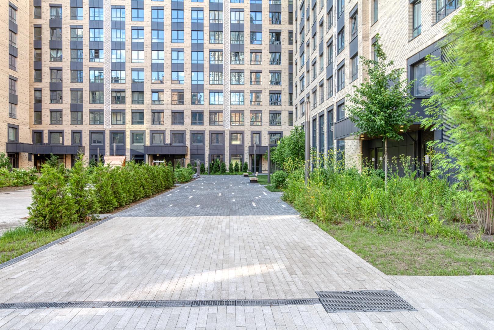 Во внутренних дворах предусмотрены тематические сценарные площадки, на которых дети могут попробовать себя в разных профессиях, а также пешеходные и велосипедные дорожки, спортивные и игровые площадки.