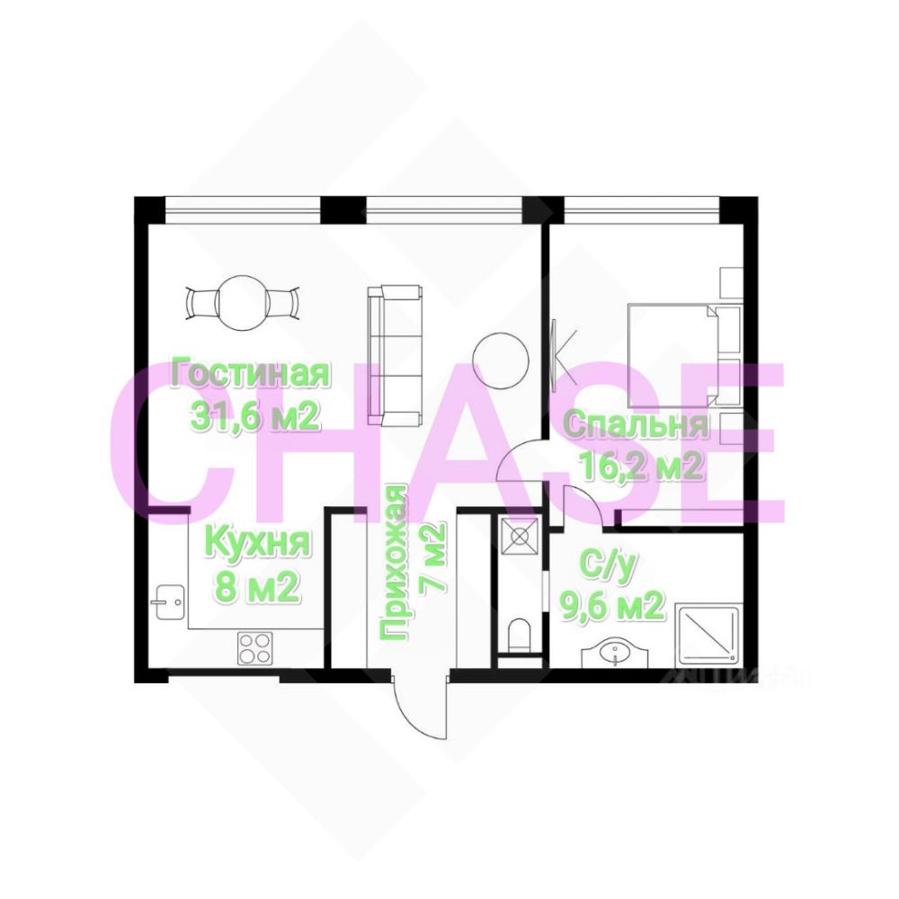 В продаже готовая квартира формата Евро_2 с просторной кухней - гостиной 39,6 м2 и мастер спальней 16,2 м2.