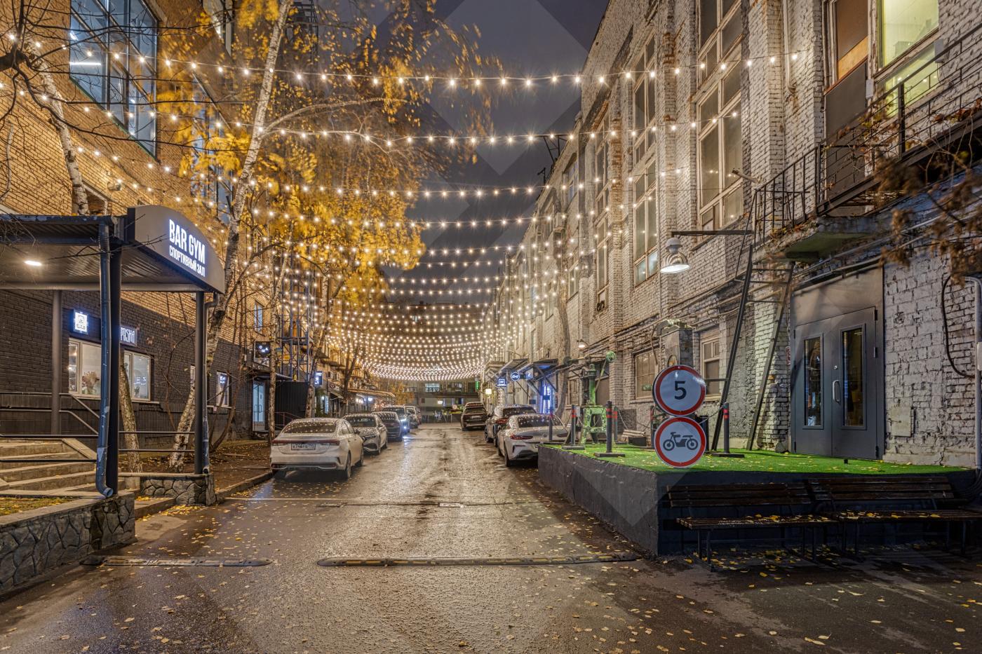 Апартамент находится в перестроенном историческом здании на территории бывшей мебельной фабрики «Мюръ и Мерилизъ» — детища шотландских предпринимателей середины XIX века.