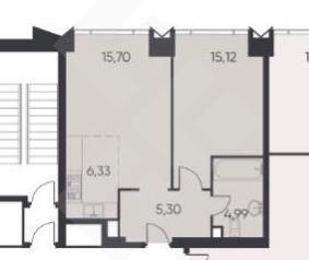 Удобное планировочное решение квартиры : просторная кухня-гостиная, спальня с вместительным шкафом, совмещенный с/у с душевой кабиной и ванной, прихожая.