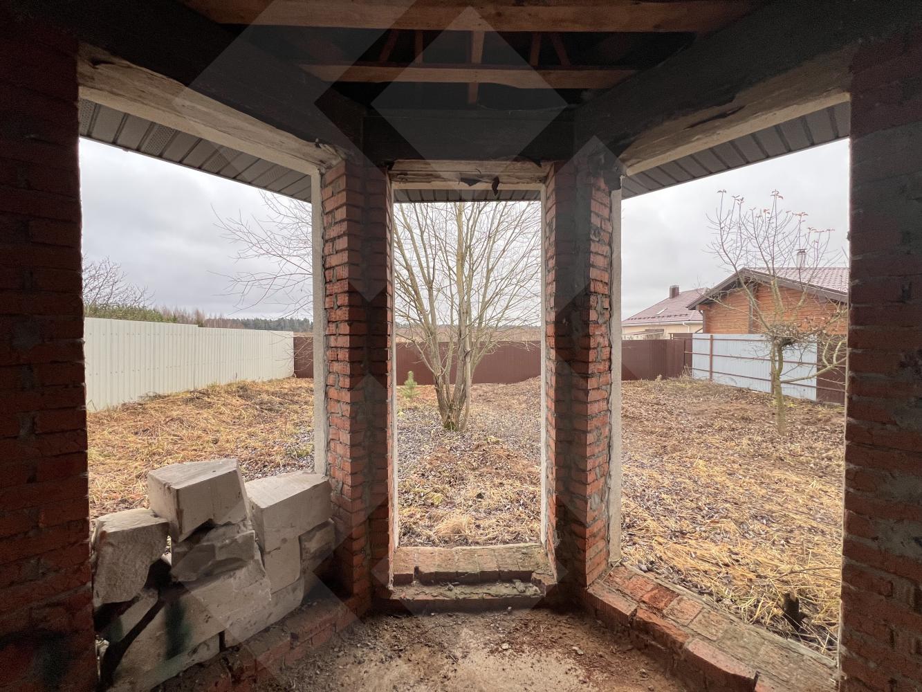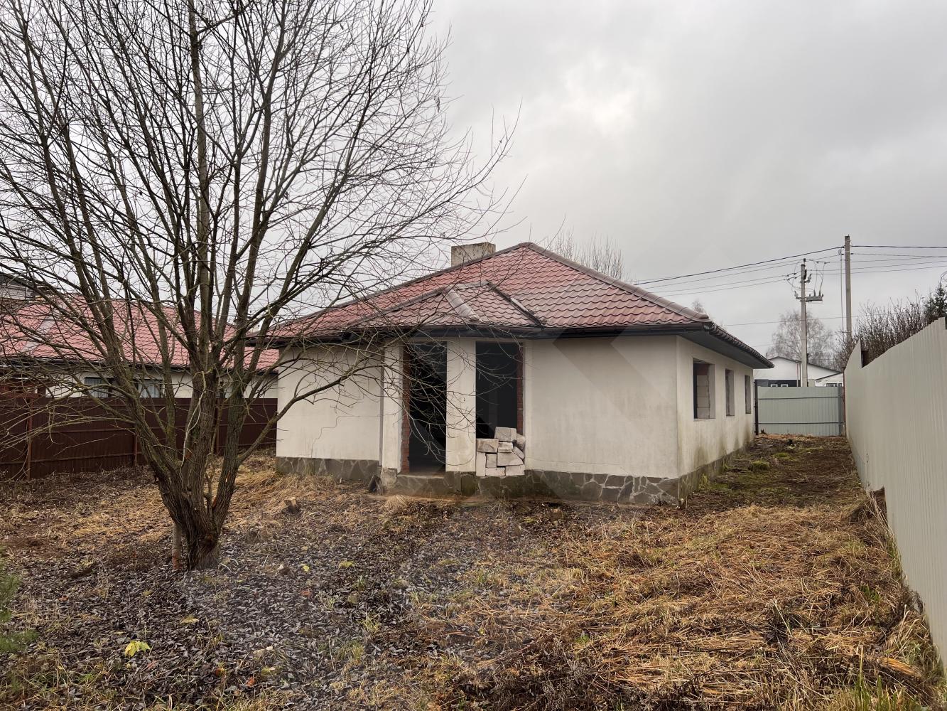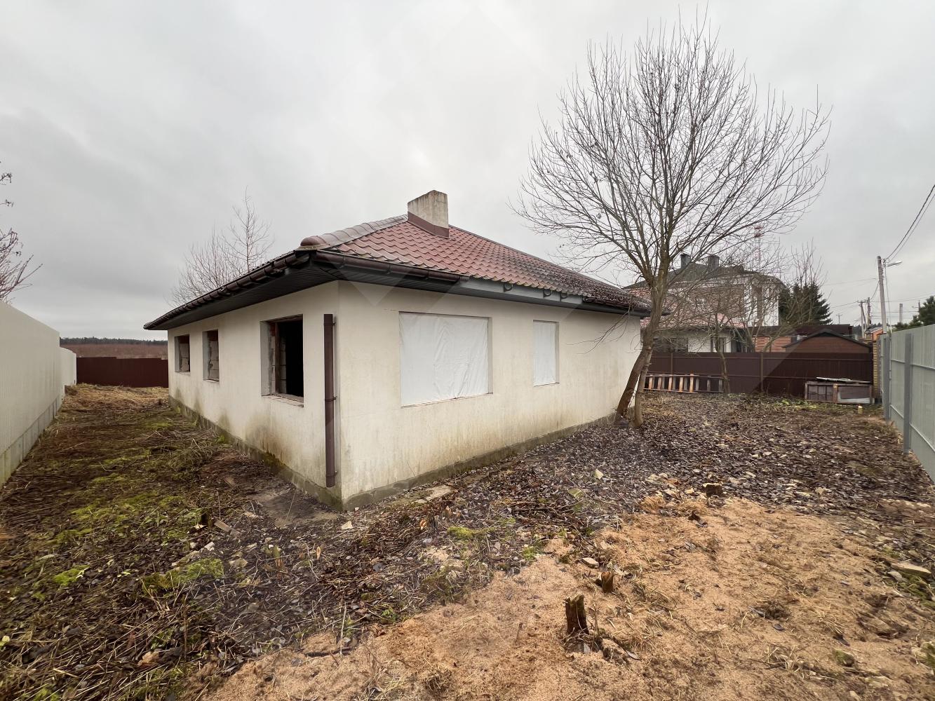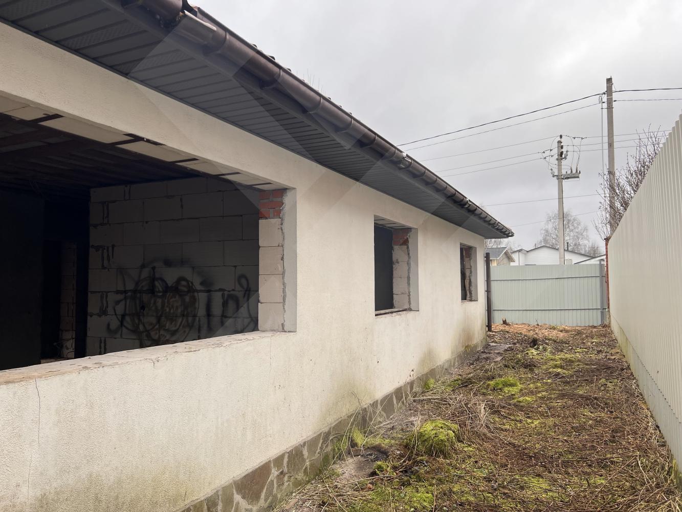Забор профнастил. Здание на участке материал - газоблоки, крыша черепица.