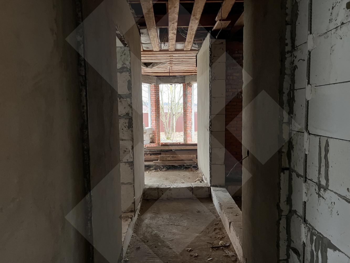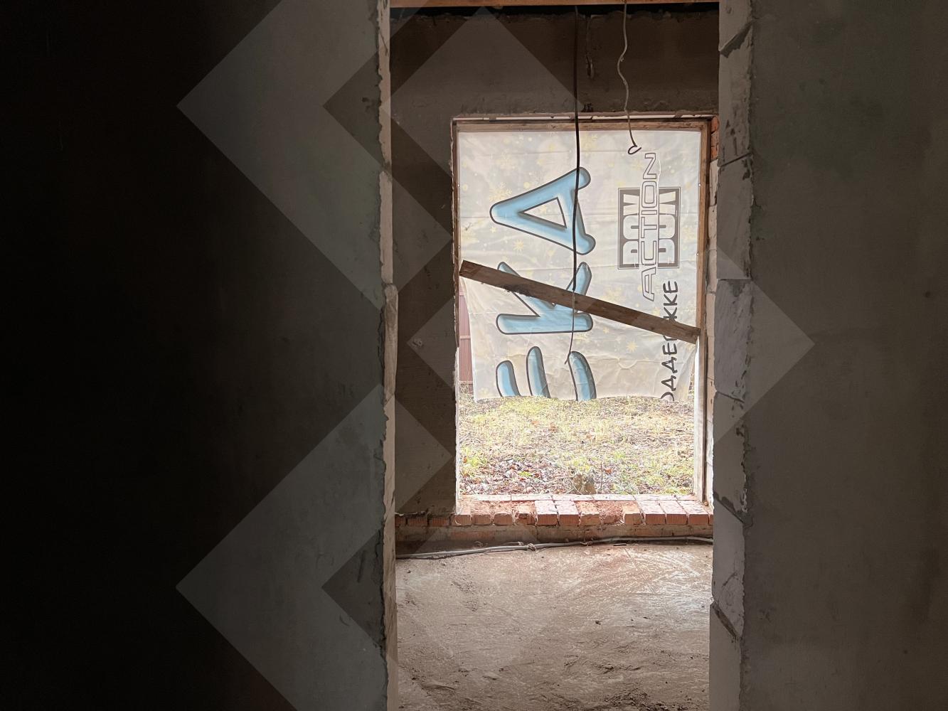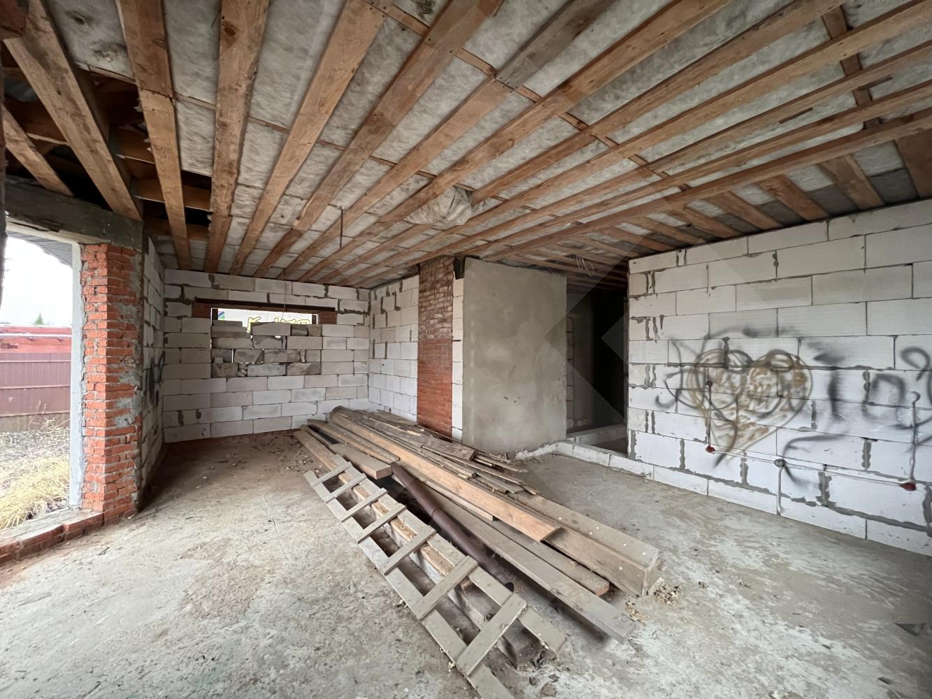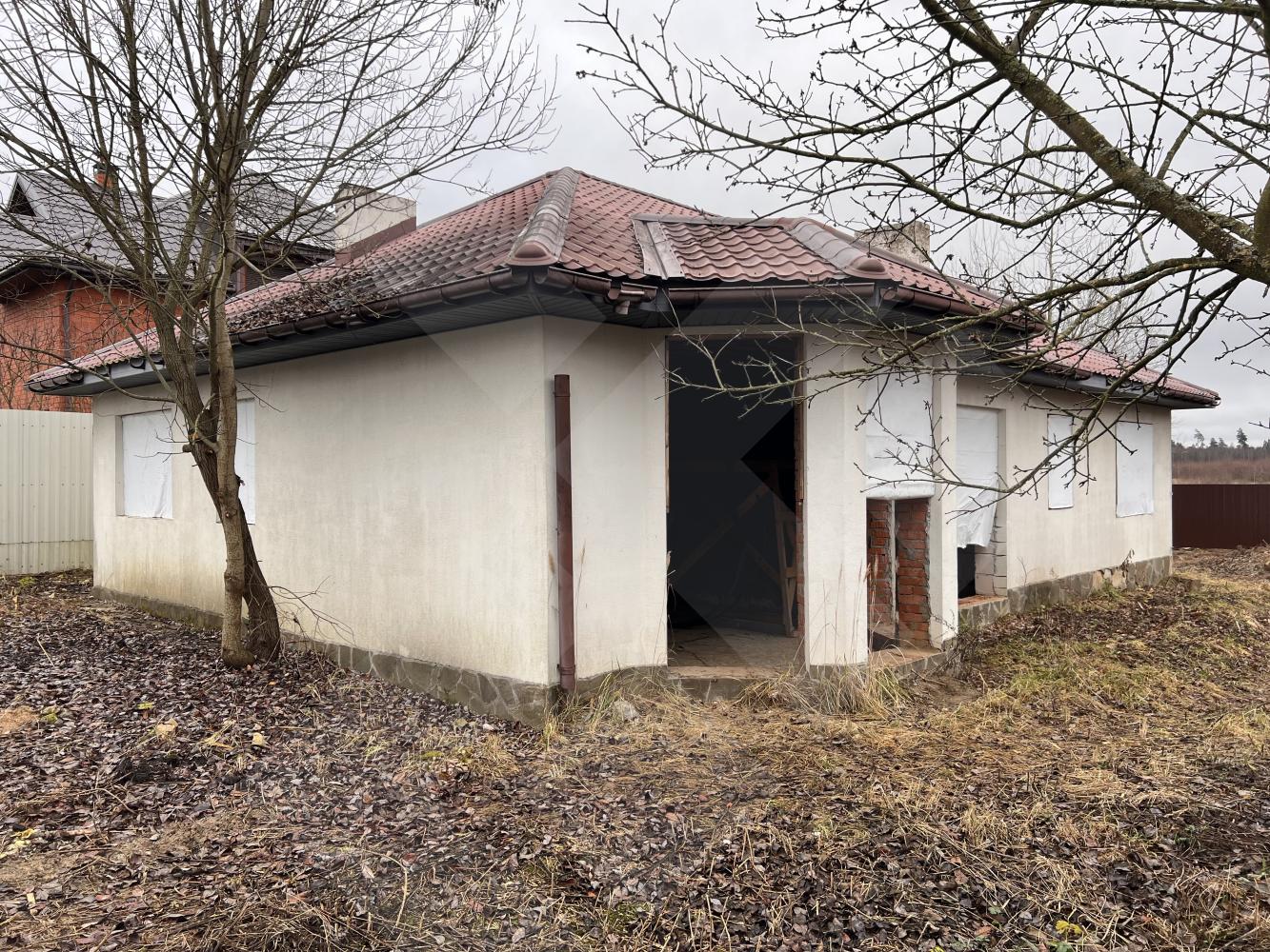 Забор профнастил. Здание на участке материал - газоблоки, крыша черепица.
