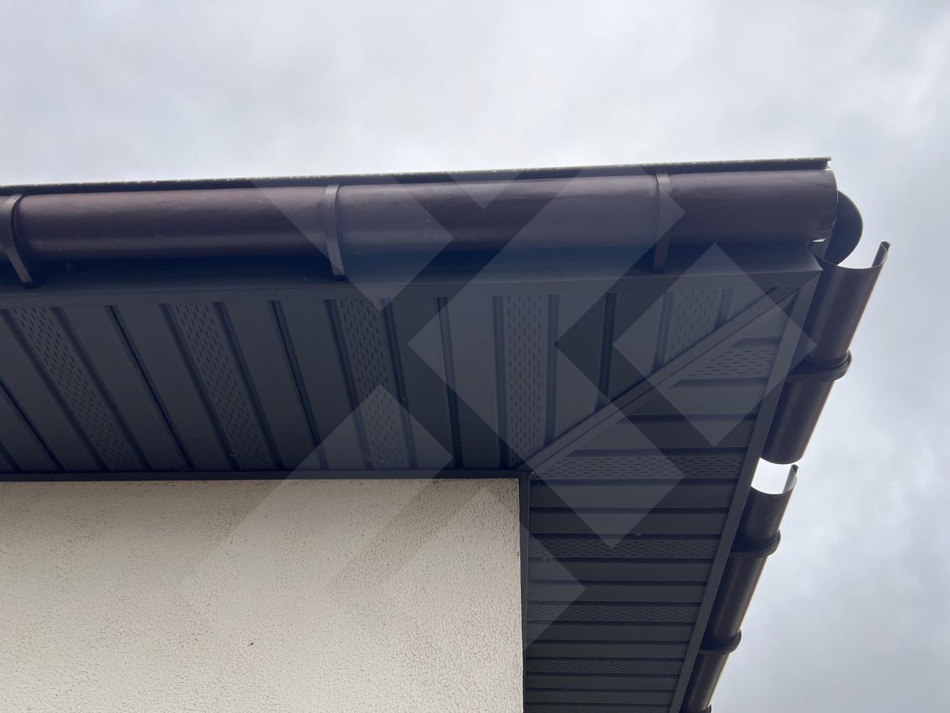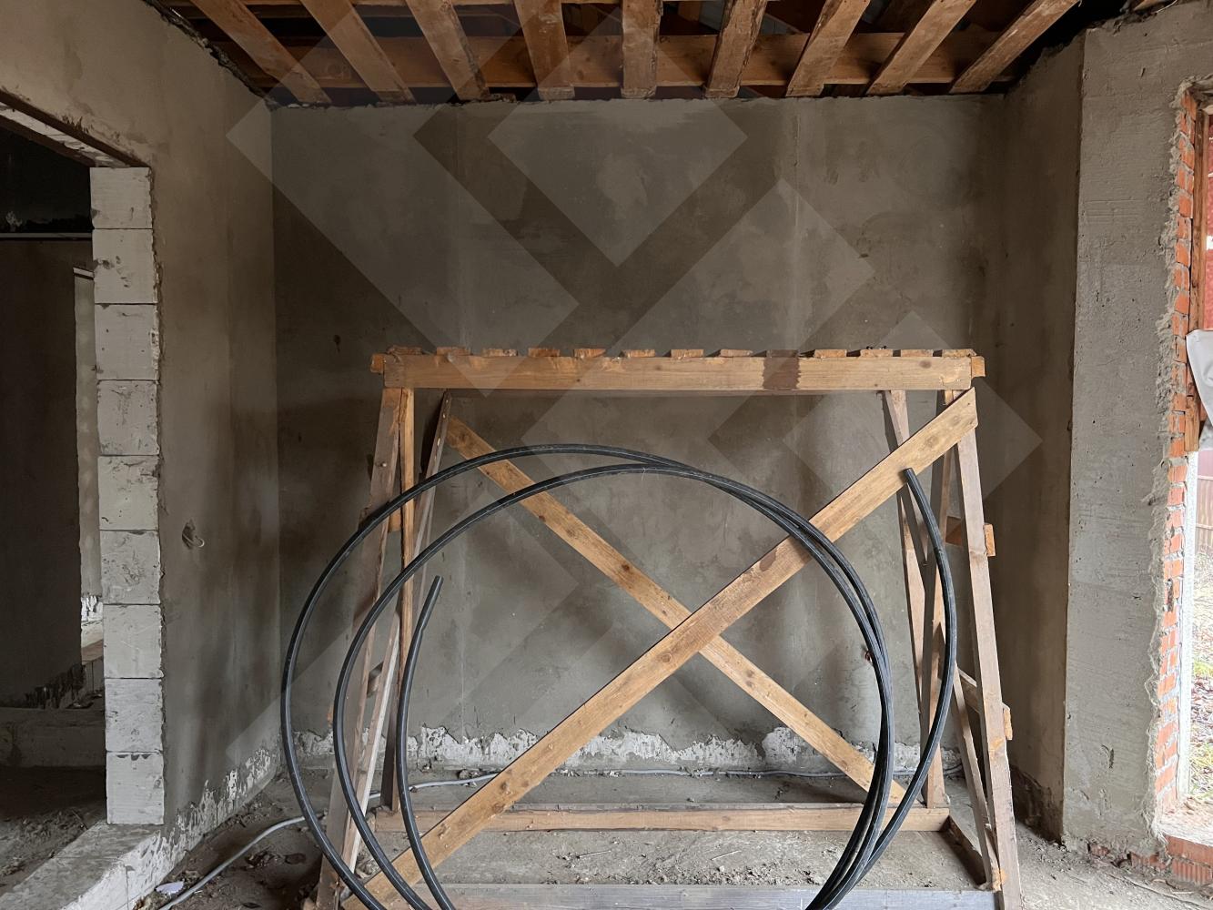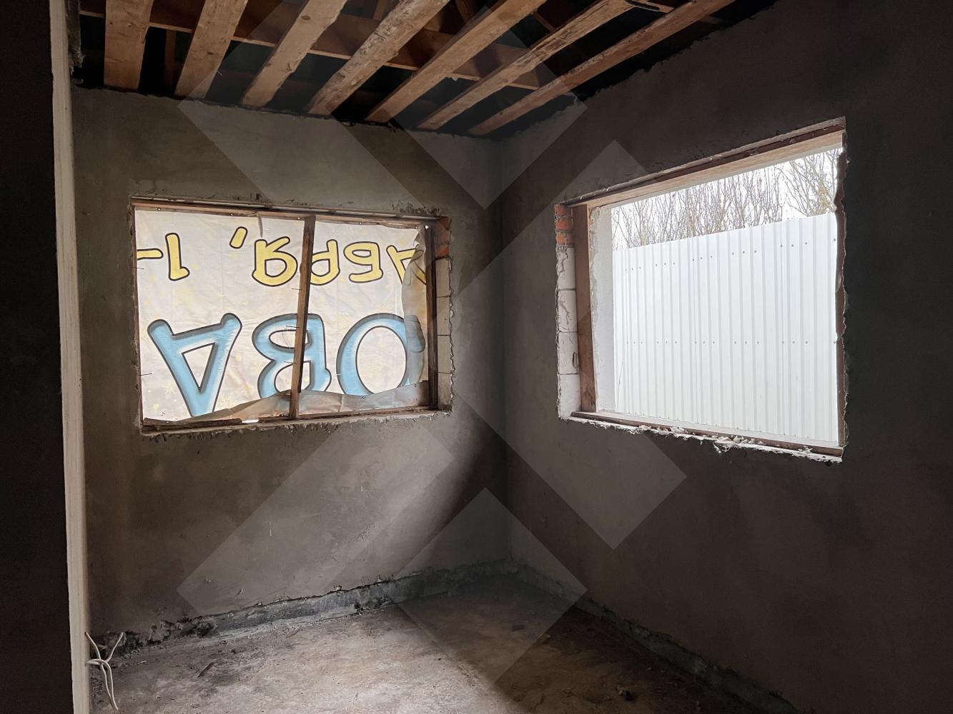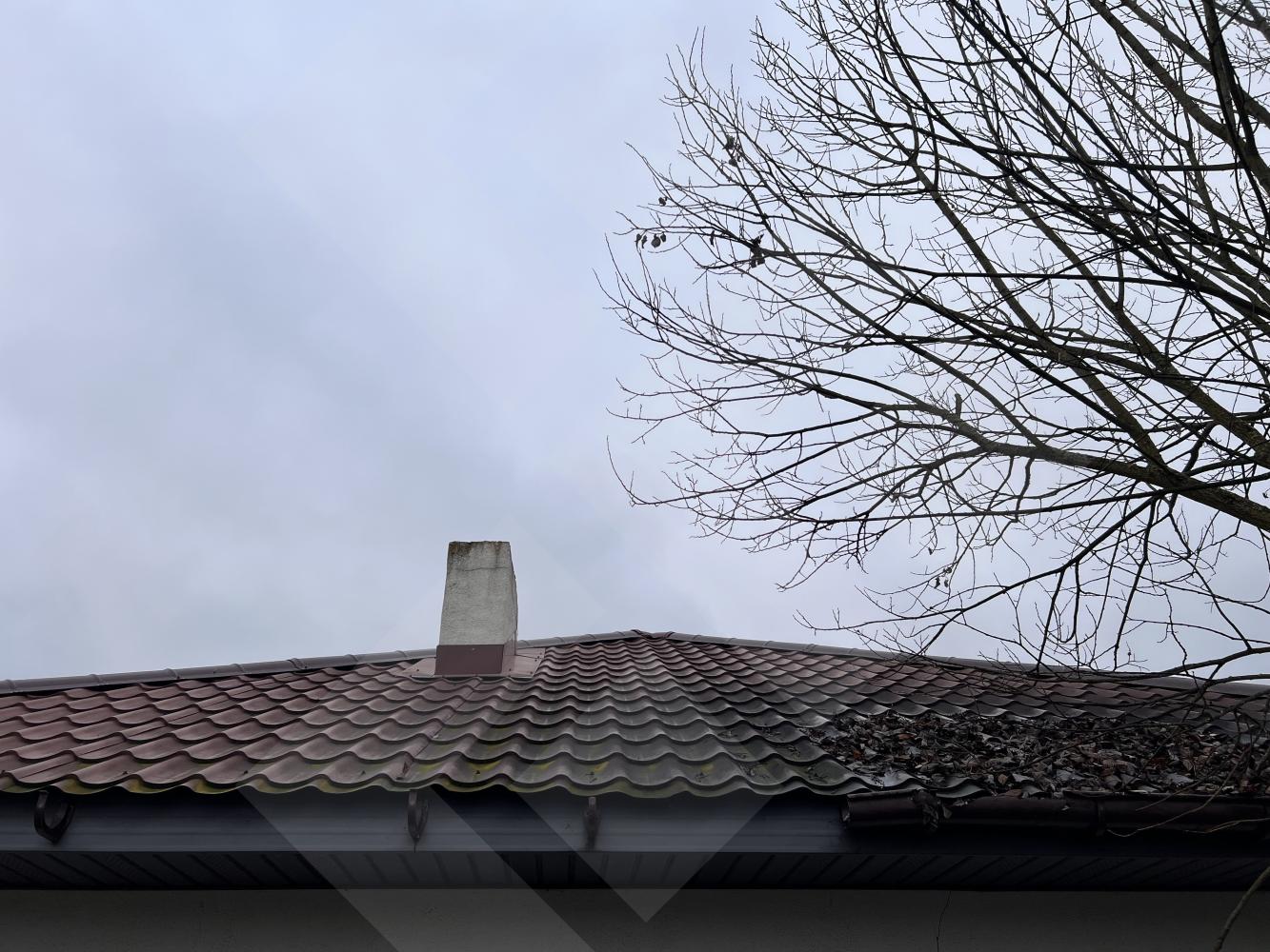 Забор профнастил. Здание на участке материал - газоблоки, крыша черепица.