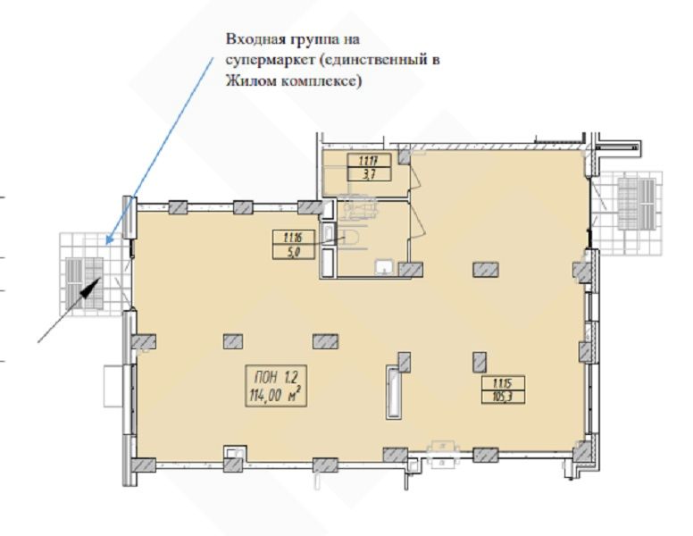 ID 58517 Предлагаю в аренду ПСН площадью 115 м2 расположенное на первом этаже многоэтажного жилого дома входящего в состав жилого квартала «1 Ленинградский». Помещение с двумя входами, зальной планировки, витринным остеклением. Все коммуникации в наличии.