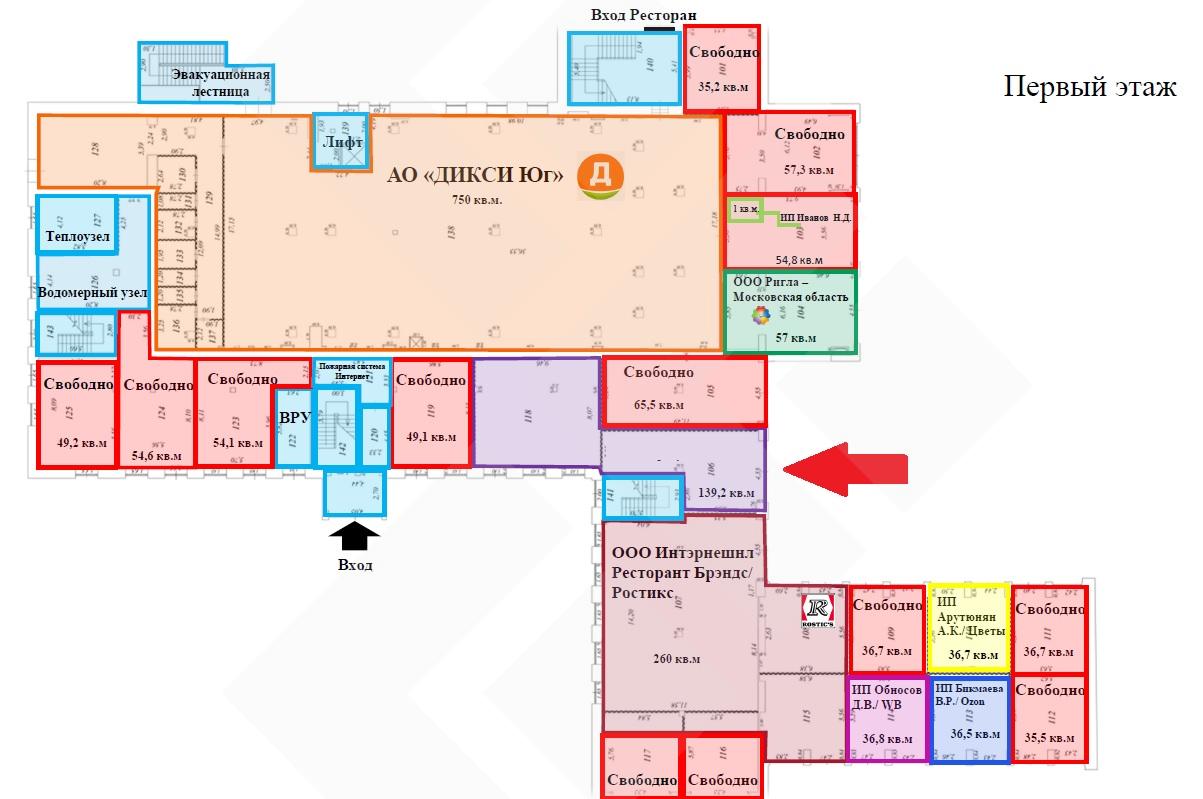 Якорные арендаторы - супермаркет Дикси, грузинское кафе Батони, Ростикс, цветы, Озон.