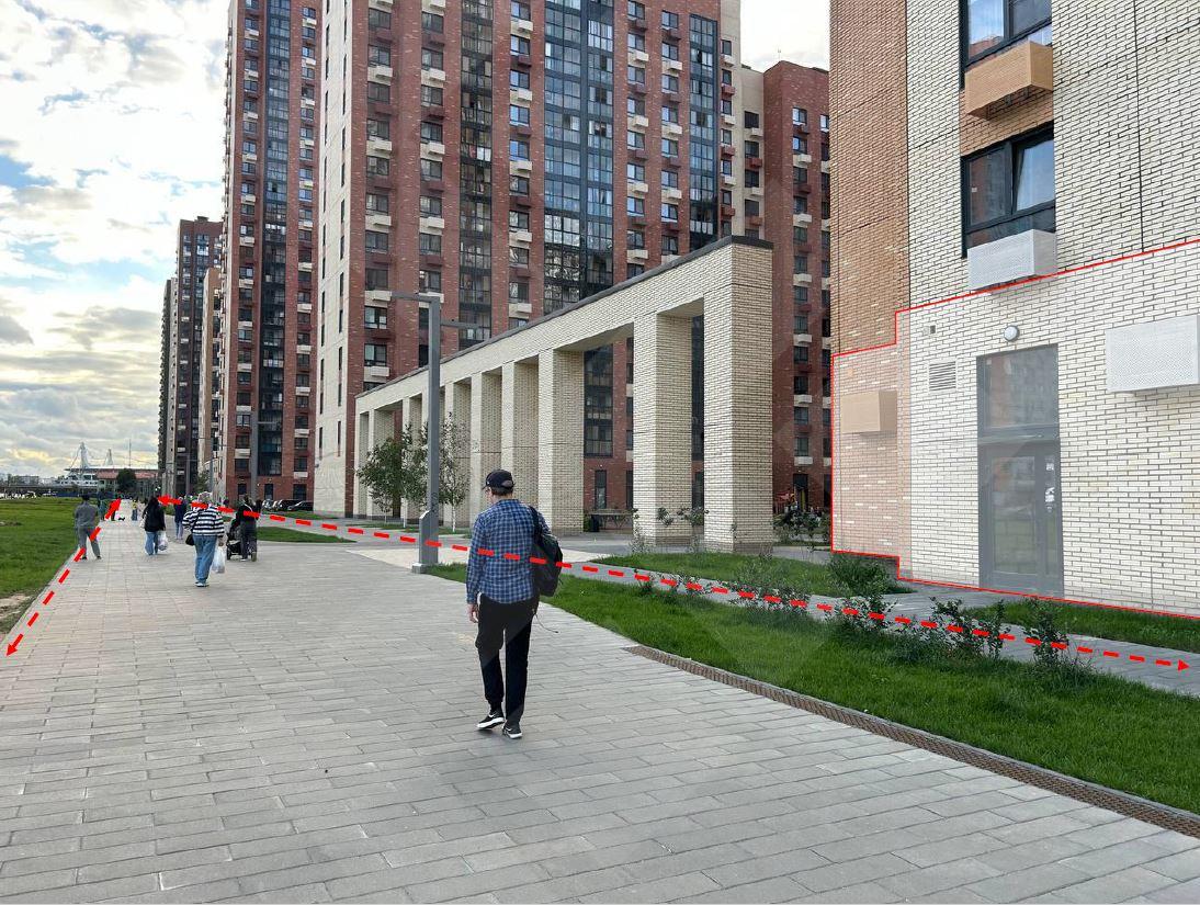 Видимость всему району. Центральный въезд в массив. Главная пешеходная линия трафика района.