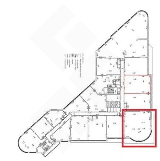 Офис имеет панорамное остекление, что способствует естественному освещению помещения. Высота потолков 3.30м. Есть свой выход на террасу. Классическая коридорно-кабинетная планировка с просторными помещениями.