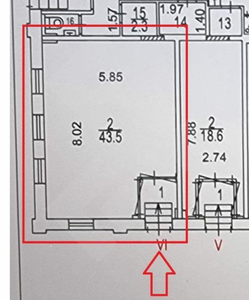 Общая площадь - 46,4 кв.м
