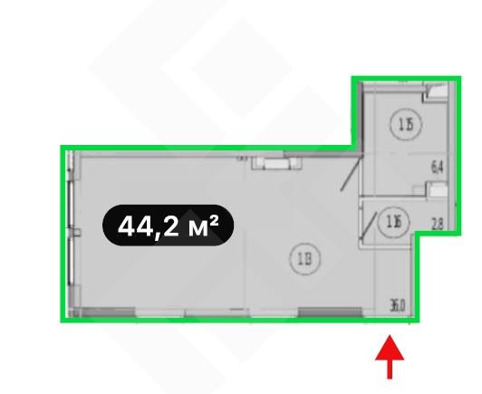 Общая площадь помещения - 44,2 кв.м