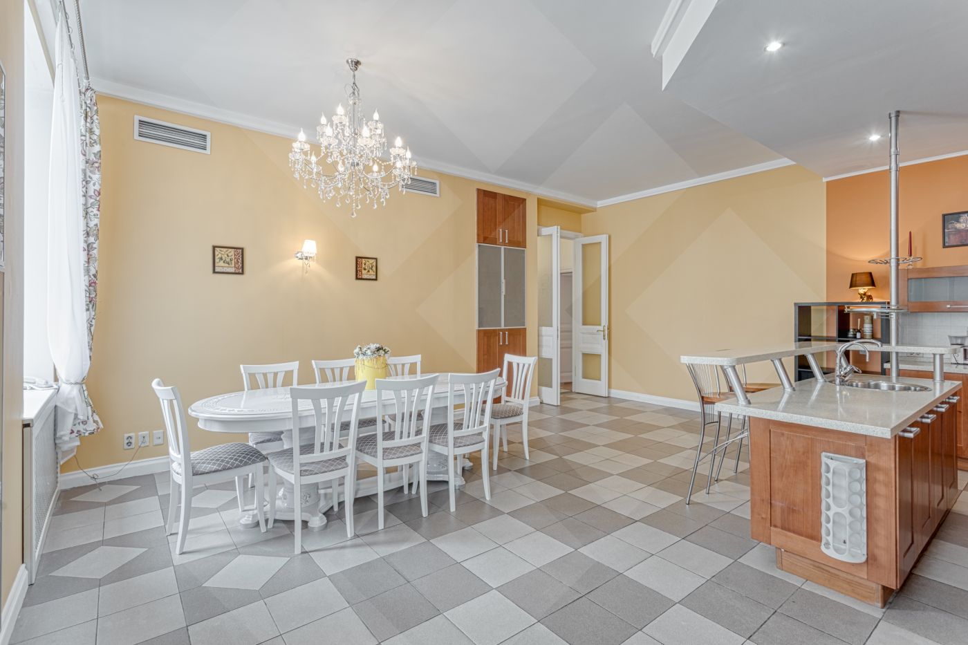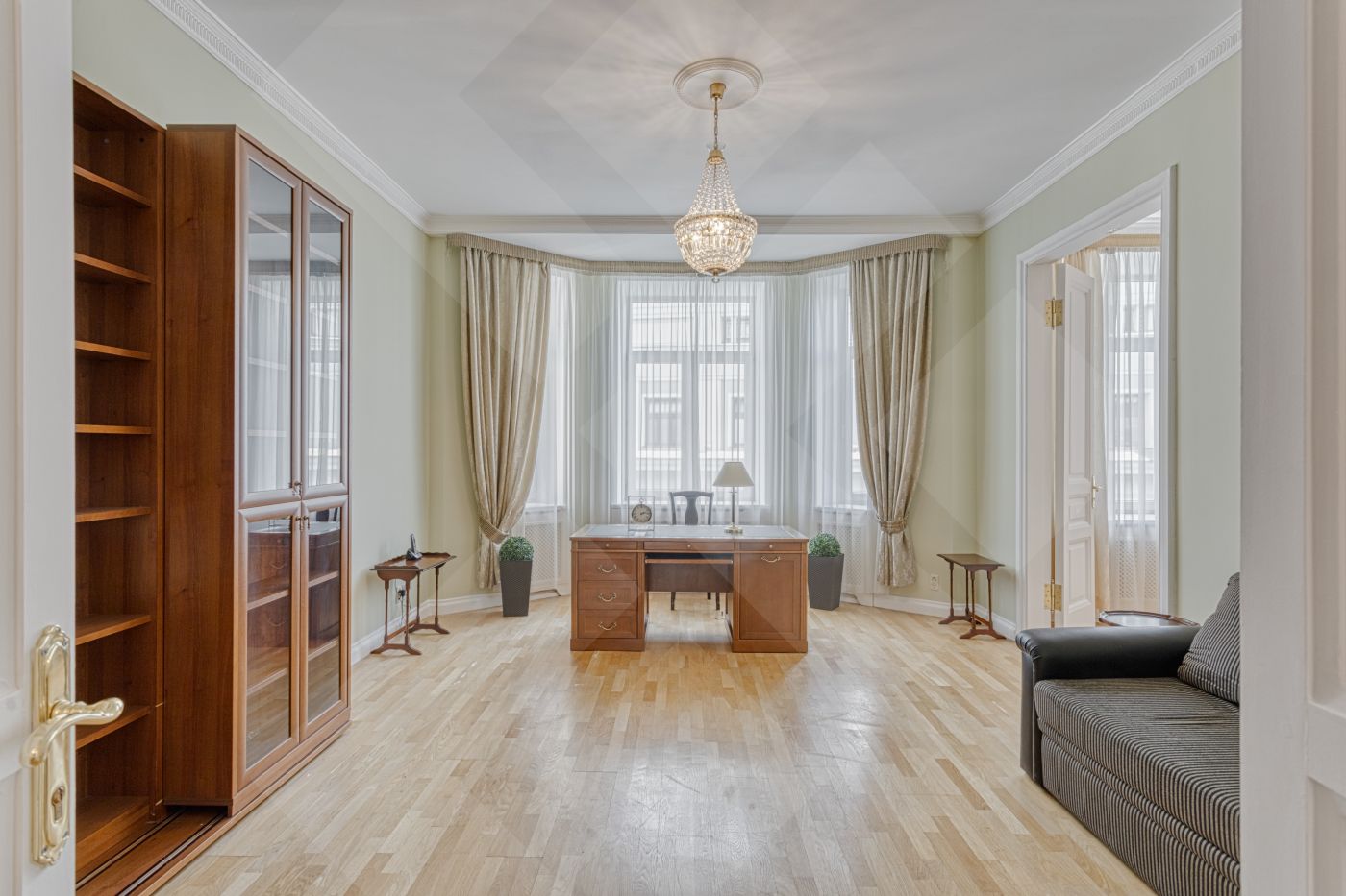 Предлагается в аренду роскошная 7-ми комнатная резиденция с каминным залом, в историческом реконструированном особняке 1913 года.Доходный дом графа Шереметьва.Дом располагается в районе АРБАТ и входит в круг ближайшей недвижимости к Кремлю. ЖК " Романов 5" насчитывает 44 квартиры.