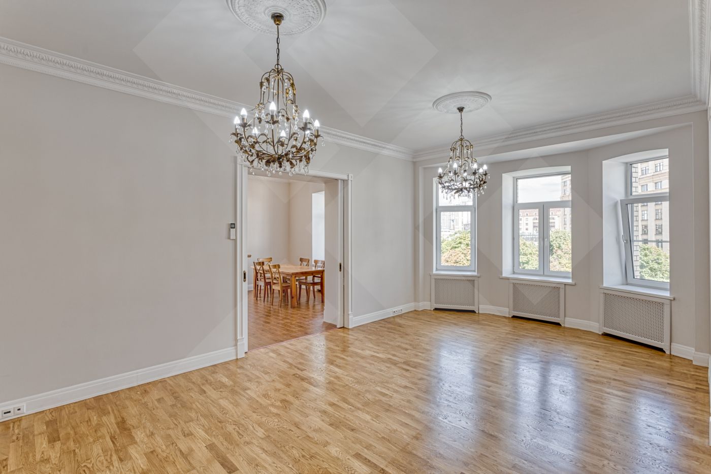 Лот J41459. Елена. В аренду предлагается просторная, светлая, с прекрасными видами 5-ти комнатная квартира в реконструированном историческом доме на легендарной Пятницкой улице, в шаговой доступности от развитой инфраструктуры города, множества кафе и ресторанов, великолепных памятников архитектуры. Высококачественный евроремонт с использованием только современных натуральных материалов. Полная комплектация бытовой техникой и сантехникой престижных марок. Предлагается без мебели. Установлен бойлер, кондиционеры, стиральная и сушильная машины, проведен высокоскоростной интернет. Очень функциональная планировка: общая площадь 162 кв. м, гостиная, огромная изолированная кухня-столовая, 4 спальни, 2 ванные комнаты и гостевой туалет, гардеробная, встроенные шкафы. Окна выходят на 3 стороны, изумительные панорамные виды, высокие потолки, балкона нет. В ближайшем доступе множество памятников архитектуры, музеев, театров. На длительный срок аренды.