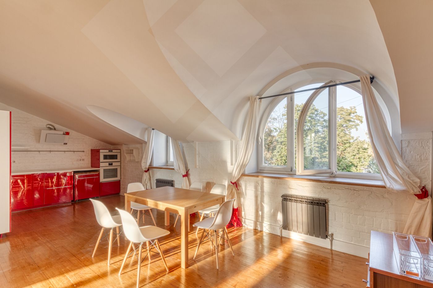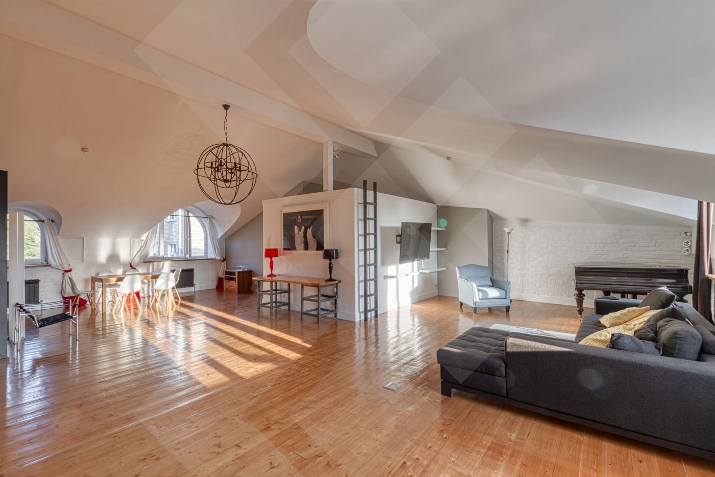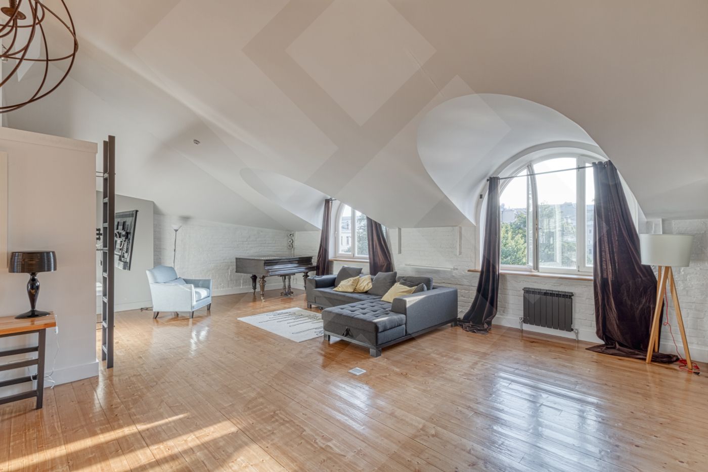 Предлагается в аренду стильная, просторная квартира-мансарда с террасой. Дизайн квартиры выполнен в стиле "Лофт". Гостиная совмещена со столовой зоной и зоной кухни. 2 спальни со своими санузлами и гардеробными, полноценный гостевой санузел c душевой и постирочной при входе в квартиру, бойлер. Квартира со вкусом меблирована, дополнена стильными предметами интерьера и укомплектована всей бытовой техникой ведущих европейских производителей. Оснащена системой кондиционирования, система "теплый пол". Окна выходят на 2 стороны. Не шумно, вторая линия домов.