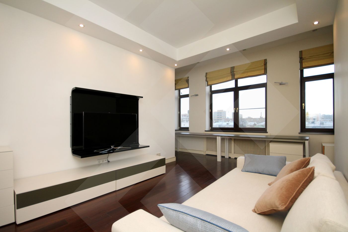 Брокер Марьяна Ткачук. Предлагается прекрасная 5-ти комнатная квартира с шикарным панорамным видом (на три стороны), с просторной террасой. Общая площадь: 220 кв.м. Потолки 3.15 м. Эргономичная планировка: кухня объединена с гостиной, три спальные комнаты, один кабинет. Квартира полностью укомплектована итальянской мебелью и бытовой техникой. Функциональные, встроенные и незаметные гардеробные.