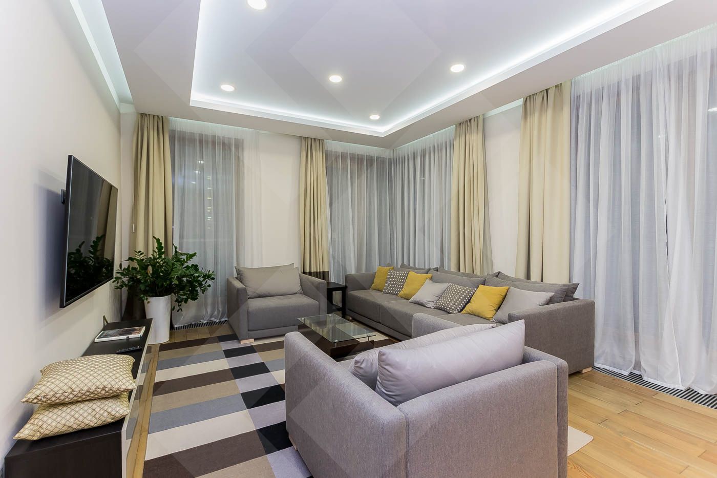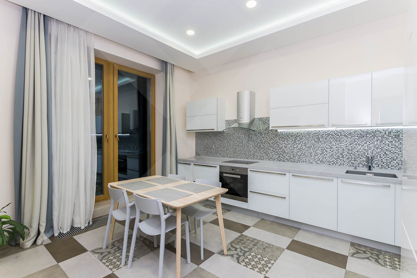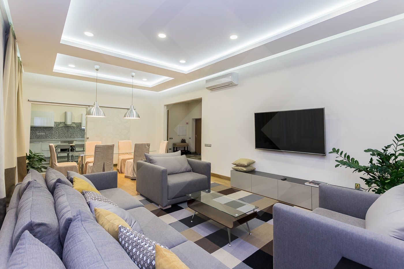 В квартире выполнен качественный ремонт, удобная планировка: гостиная, кухня, раздвижная конструкция дверей позволяет изолировать или объединять пространство, 3 спальни, вместительная гардеробная,2 полноценных сан. узла и гостевой сан. узел., панорамное остекление, балкон.