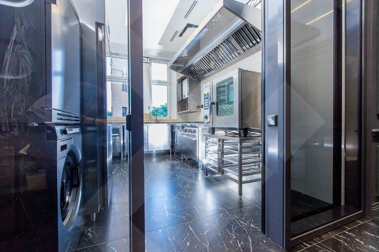 В квартире сделана идеальная планировка: просторная гостиная с действующим камином, две спальни с своими санузлами, гостевая/детская спальня, кабинет, изолированная кухня с самым профессиональным оборудованием, большой гардероб, гостевой санузел.