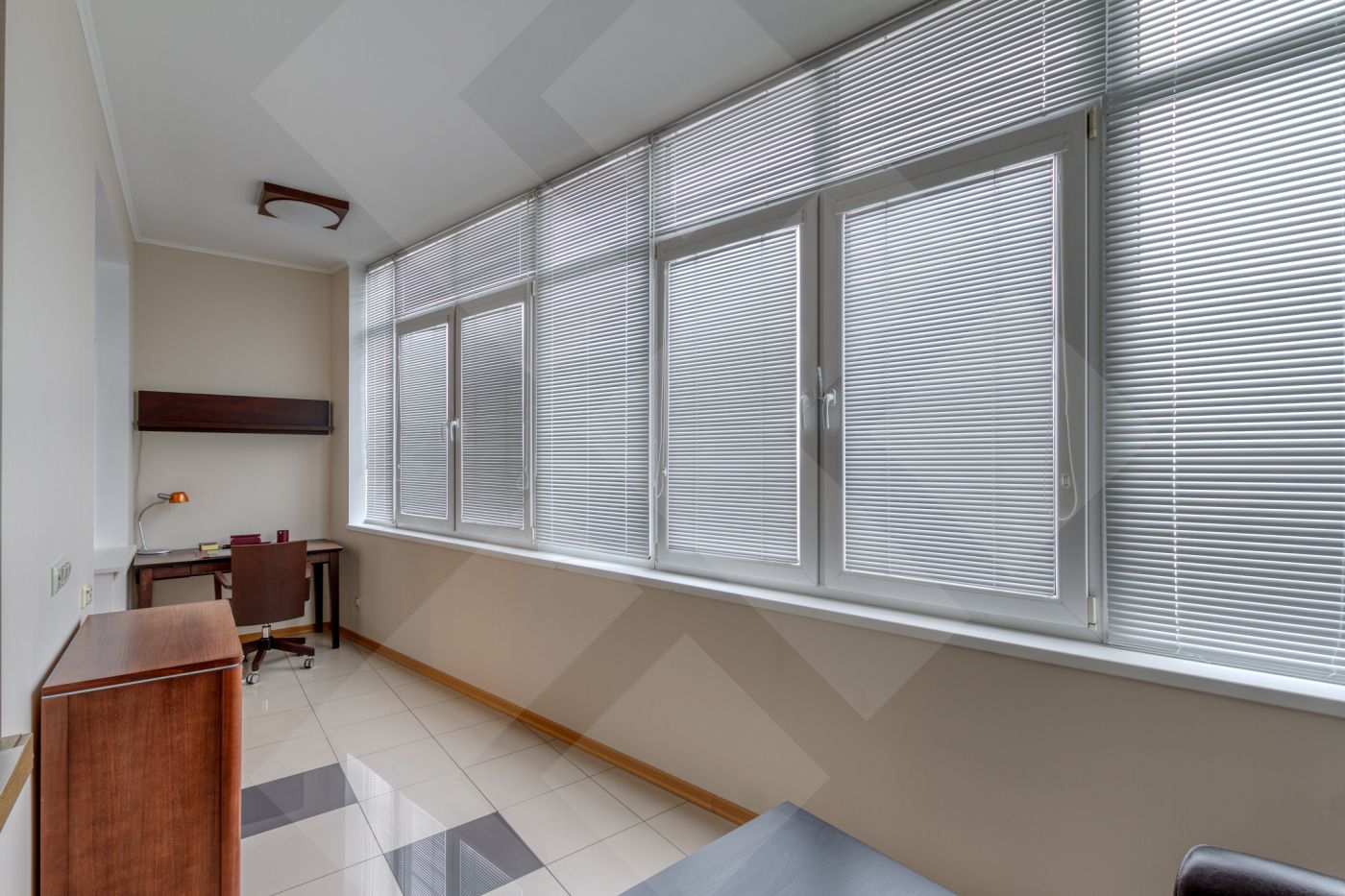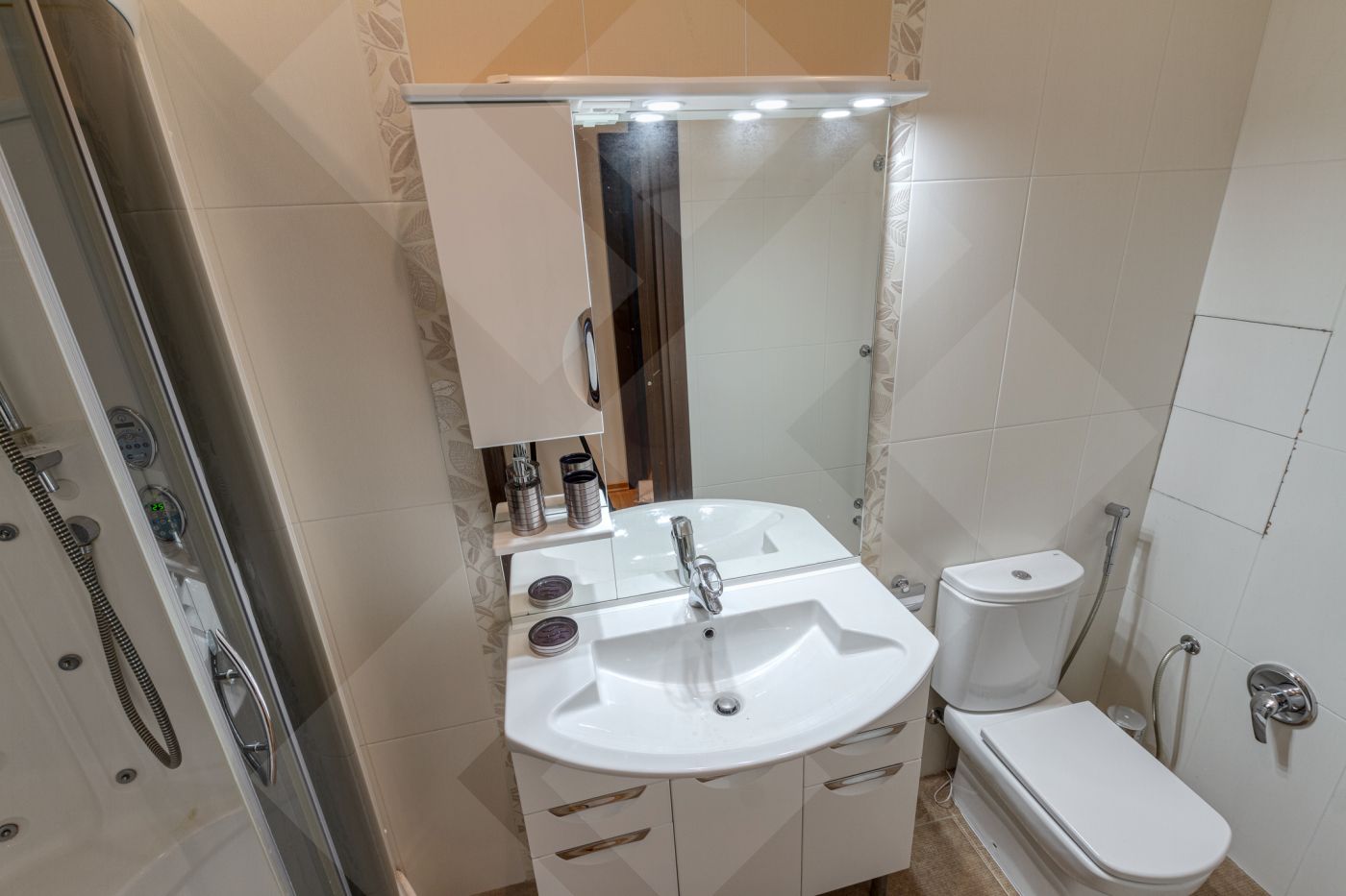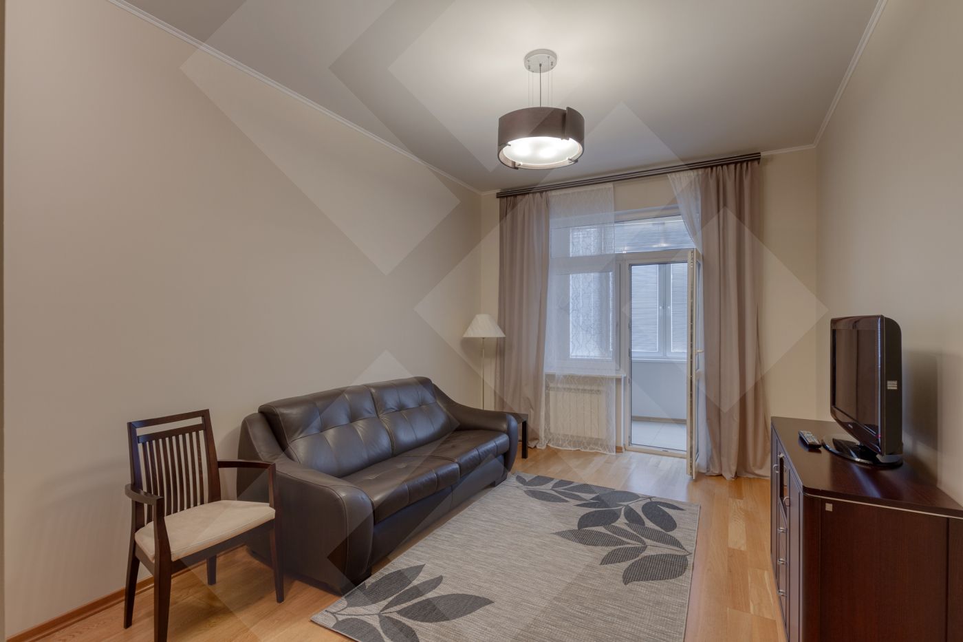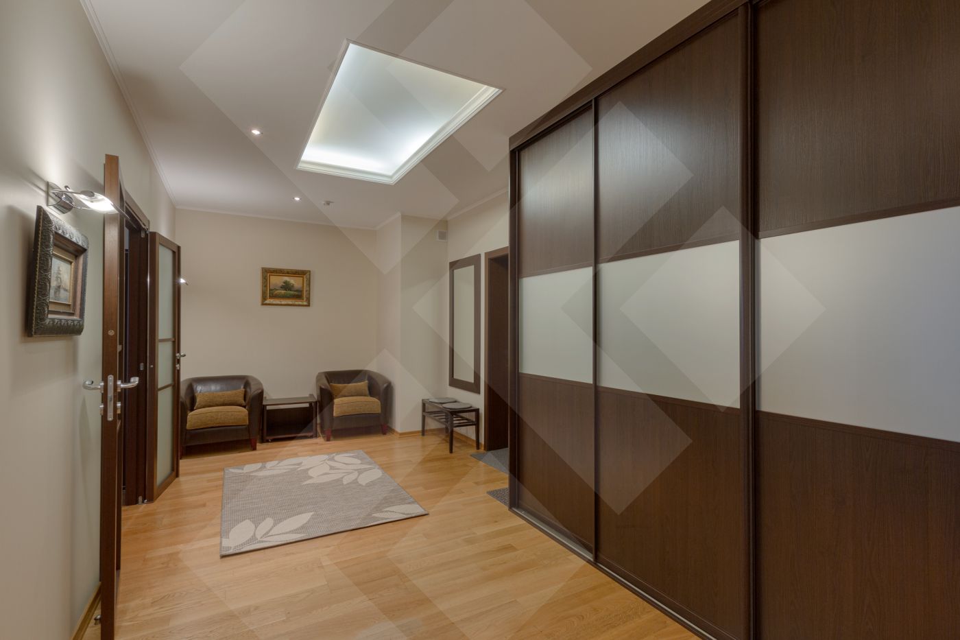 Планировка: две спальни с гардеробными, кухня, гостиная. Два санузла оборудованы качественной европейской сантехникой.