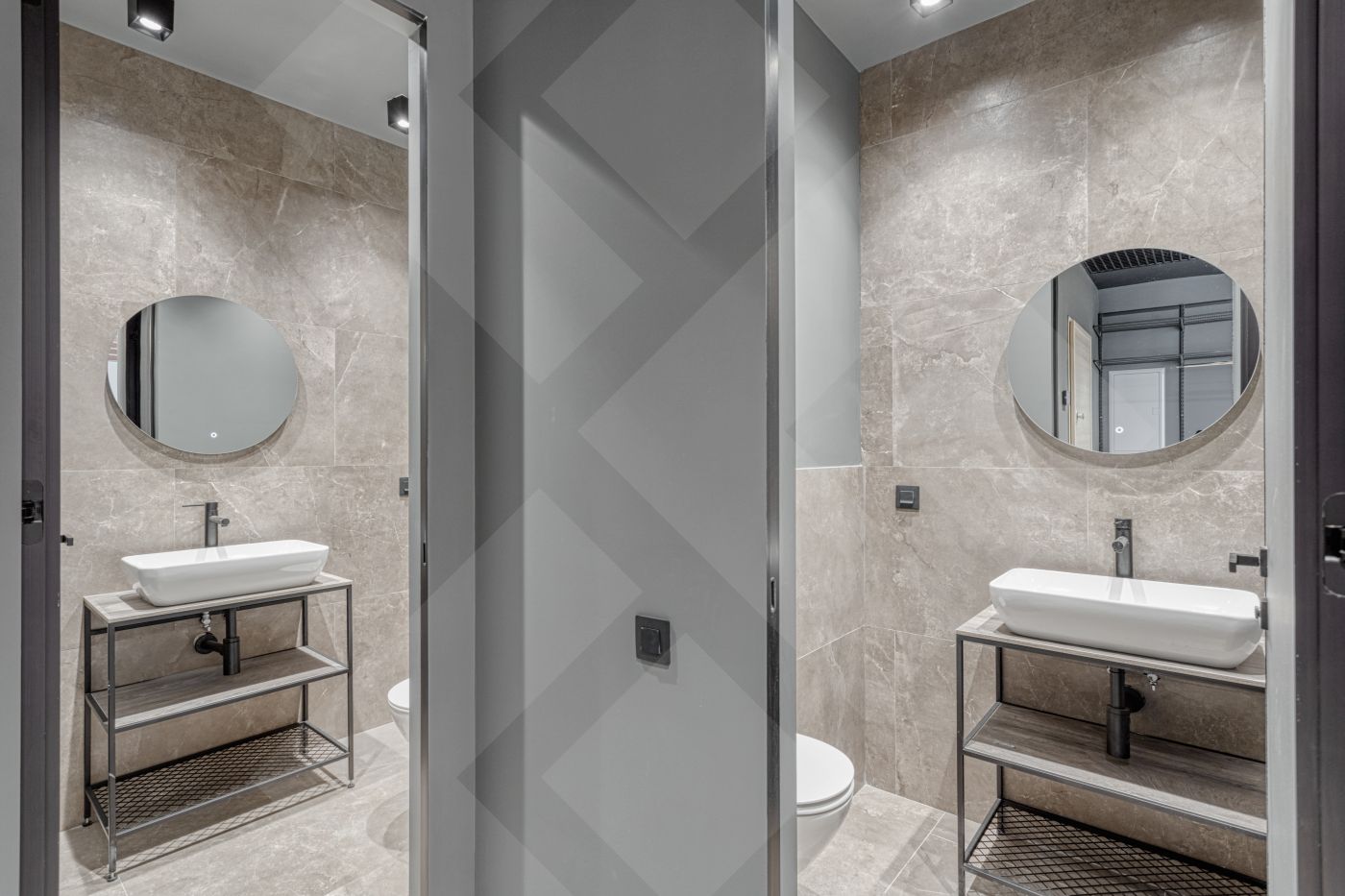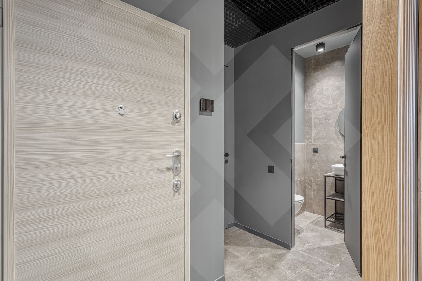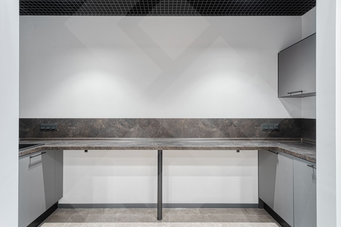 Удобная планировка - просторный опен спейс на 11 рабочих мест. Изолированный кабинет руководителя. Переговорная,серверная, кухня, ресепшн, 2 с/у. Все детали продуманы.