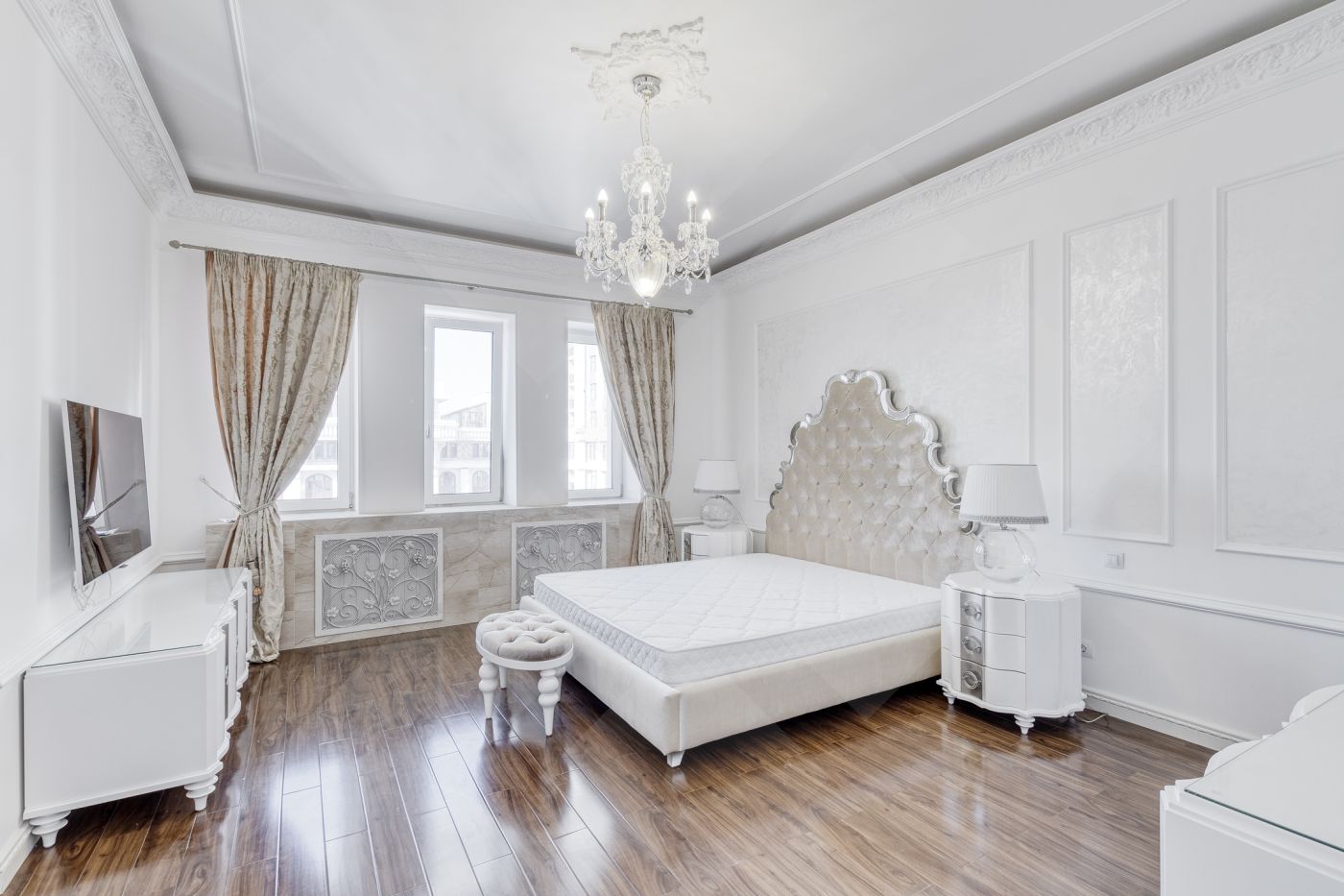 Квартира с готовой классической меблировкой и техникой от ведущих европейских производителей.