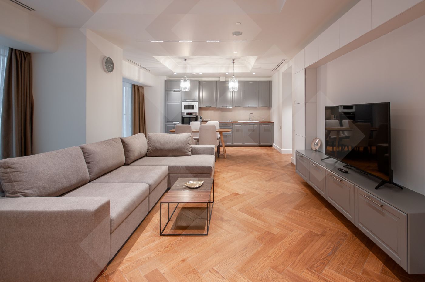 Апартаменты состоят из: просторной кухни-столовой-гостиной, одной спальни, полноценного санузла, гардеробной.
