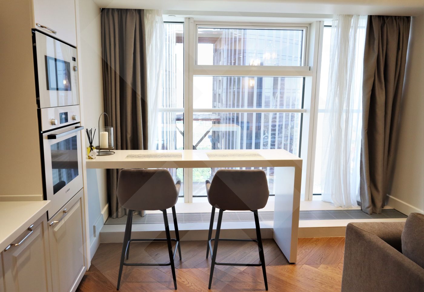 Выполнен ремонт по индивидуальному дизайн проекту в стиле « Neo Classic». Панорамное остекление с видами на индустриальную Москву. Полностью оборудованы дорогостоящей мебелью, укомплектованы бытовой техникой ведущий мировых производителей и готовы к проживанию.