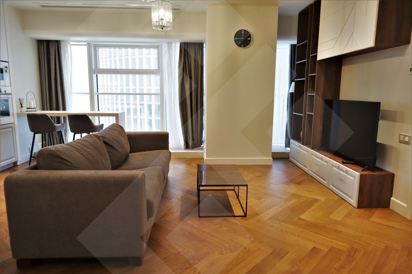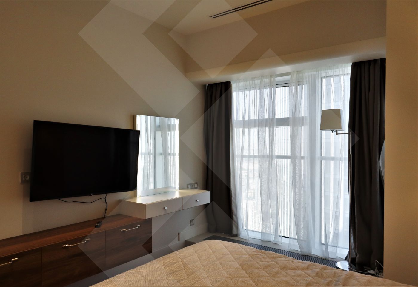 Предлагаются двухкомнатные апартаменты с панорамным видом на север города в башне «Меркурий Тауэр» на 44 этаже, общей площадью 60 кв.м.