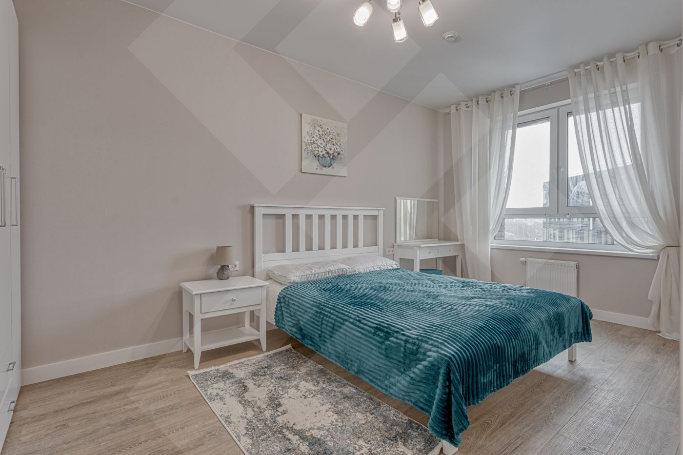 Двуспальная кровать 180x200, шкафы.