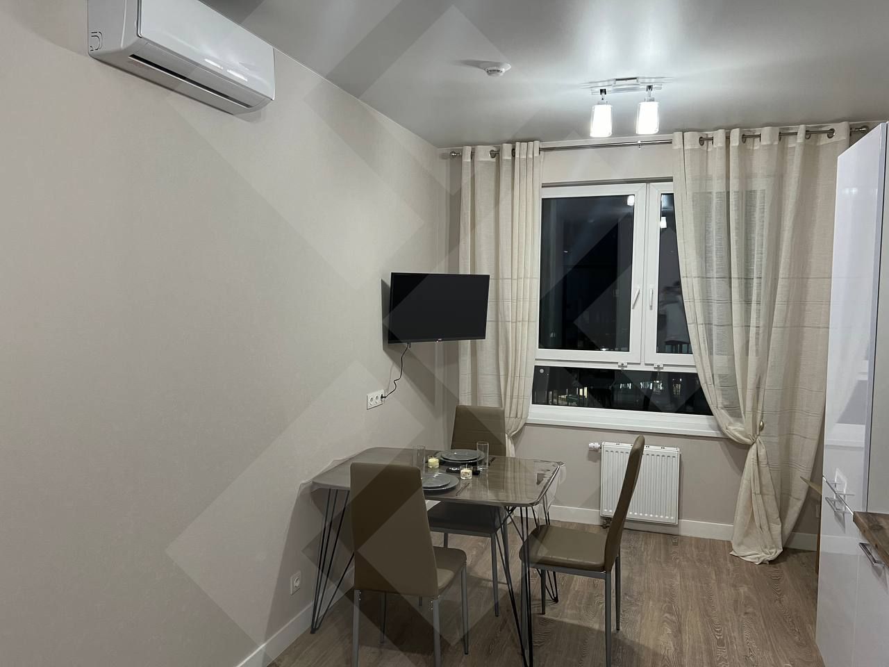 Квартира оборудована всей необходимой мебелью и техникой.