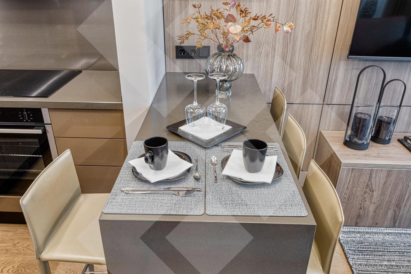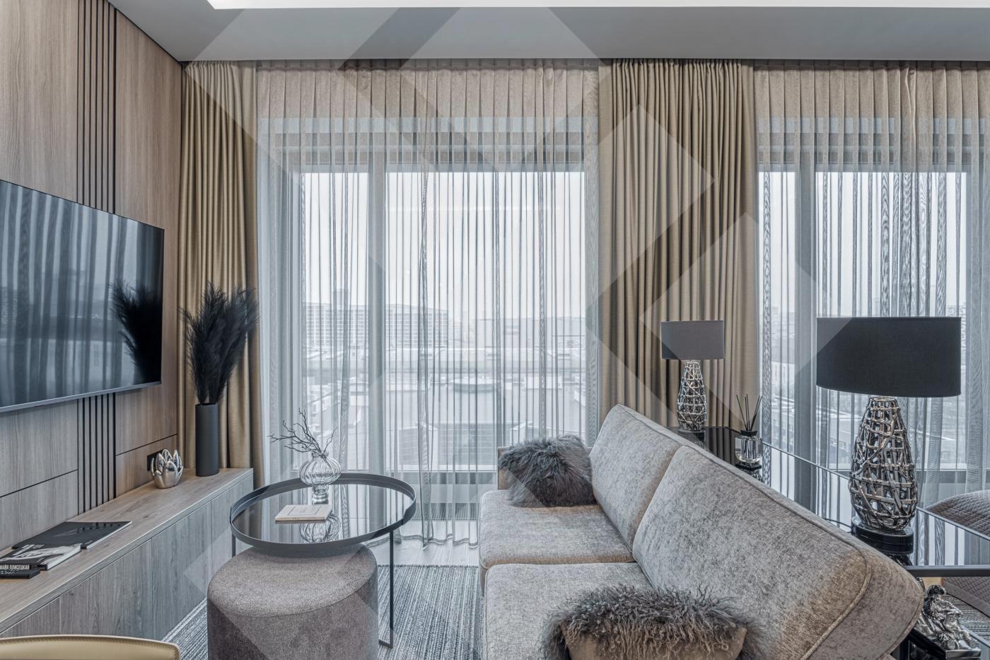 Духовой шкаф с функцией микроволновой печи, варочная панель, вытяжка, посудомоечная машина, стиральная машина с функцией сушки, Smart ТВ и центральное кондиционирование сделают ваше проживание комфортным.
