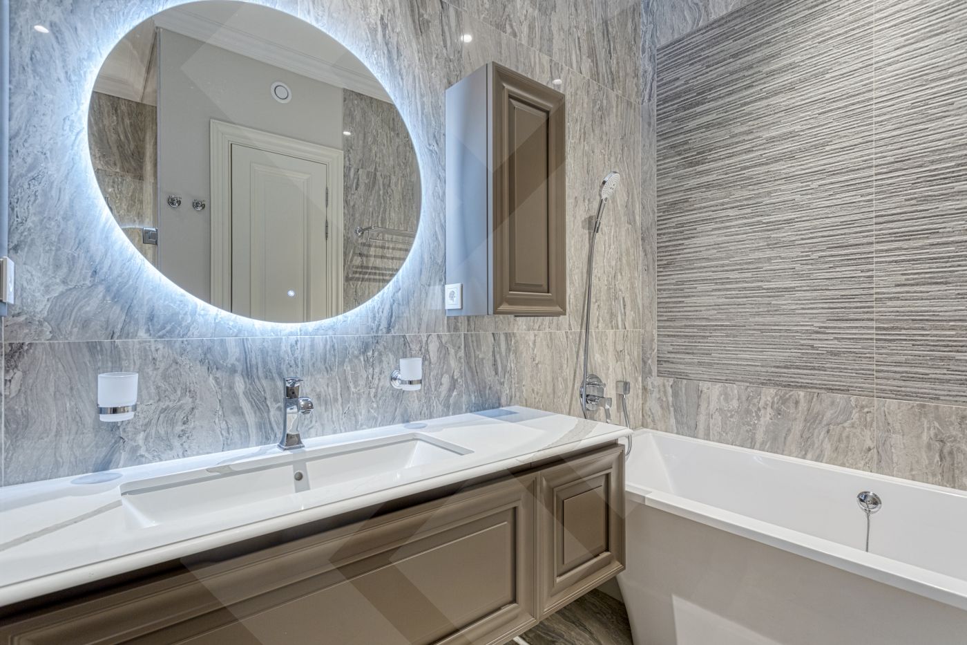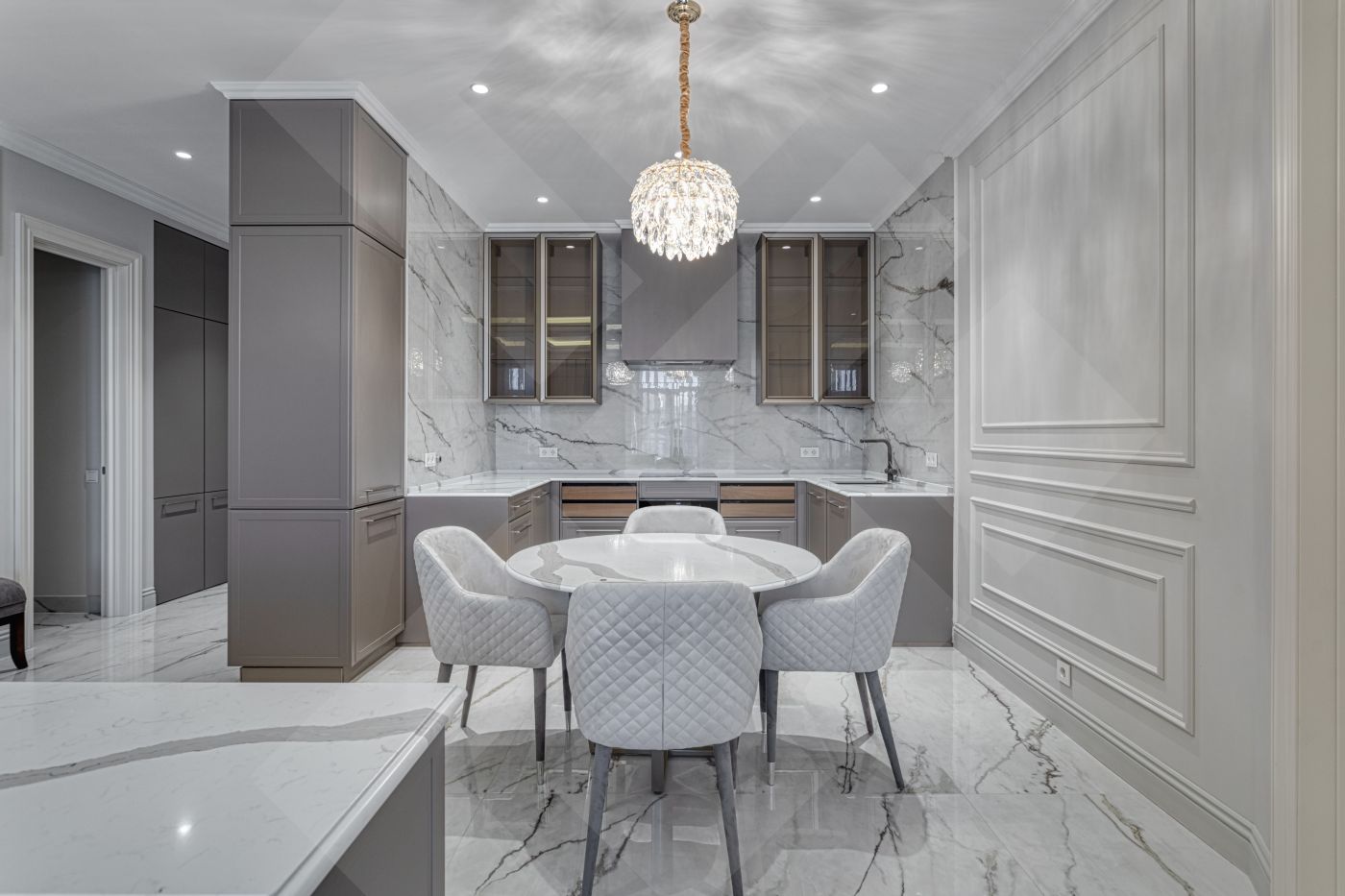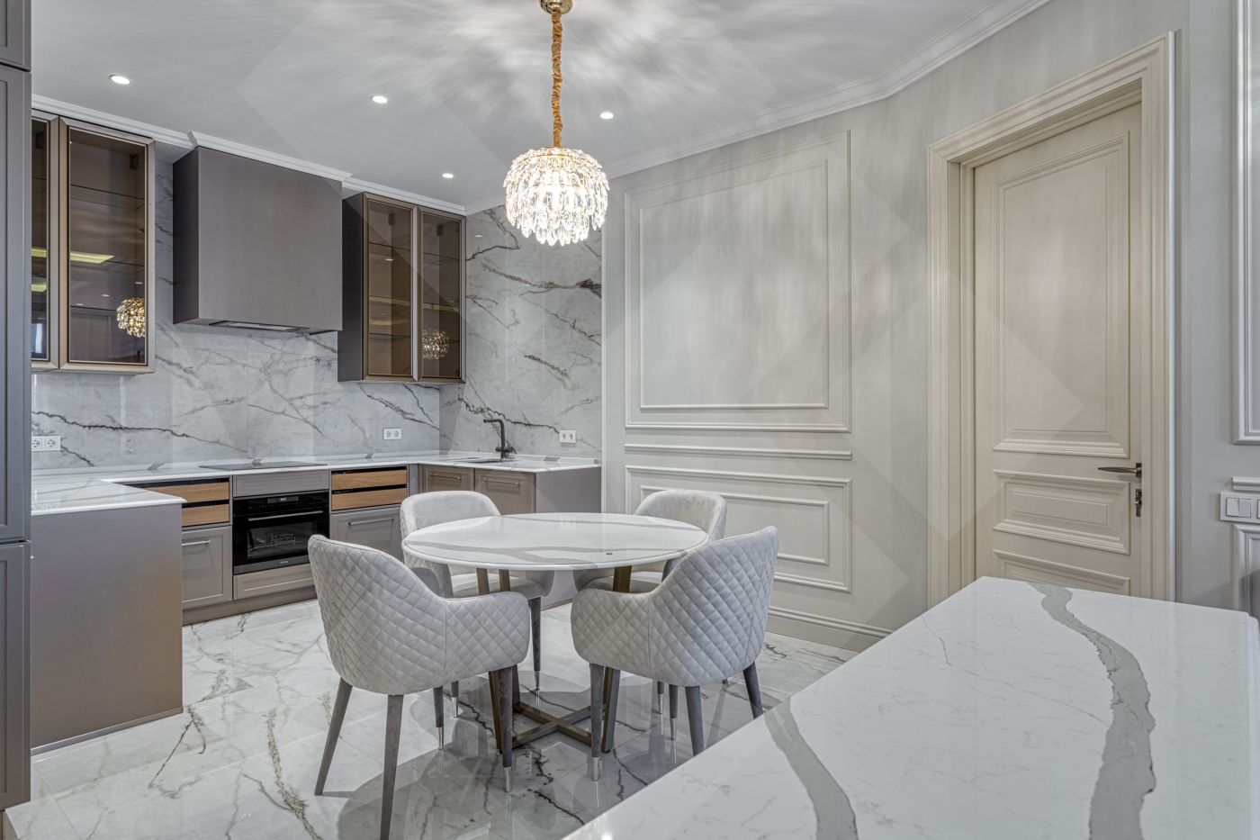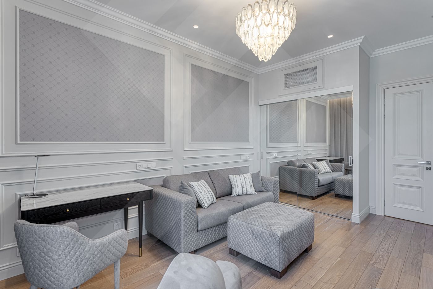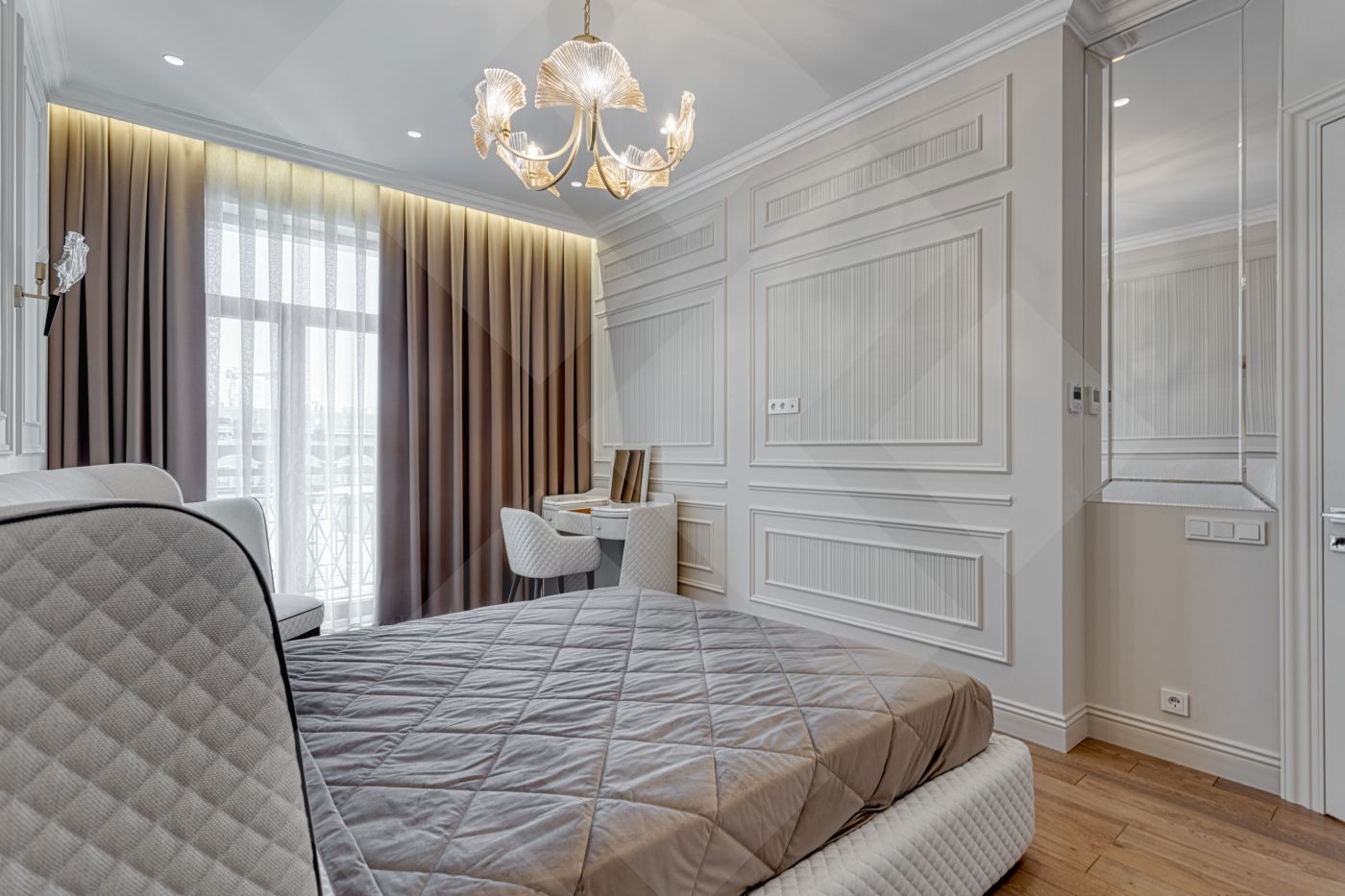 Планировка апартамента: гостиная-кухня, спальня с гардеробной и санузлом (ванна и душевая); кабинет (или еще одна спальня) с санузлом. Выполнен дизайнерский ремонт ремонт. Центральная система кондиционирования, полы с подогревом. Бытовая техника от ведущих мировых производителей стиральная машина с сушкой, индукционная варочная панель, телевизор 85 дюймов, домашний кинотеатр, и прочее. В стоимость входит одно машино-место в подземном паркинге.