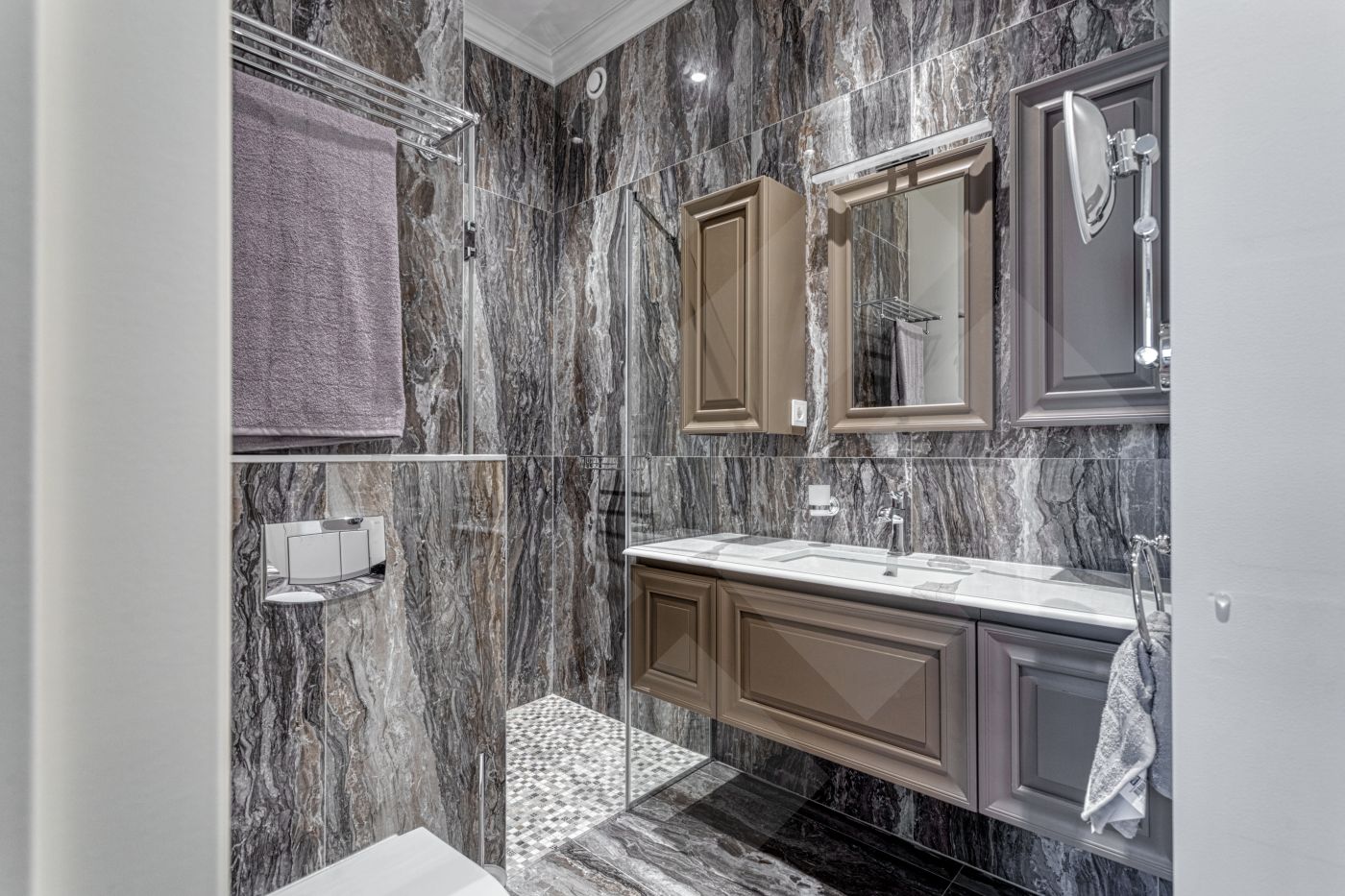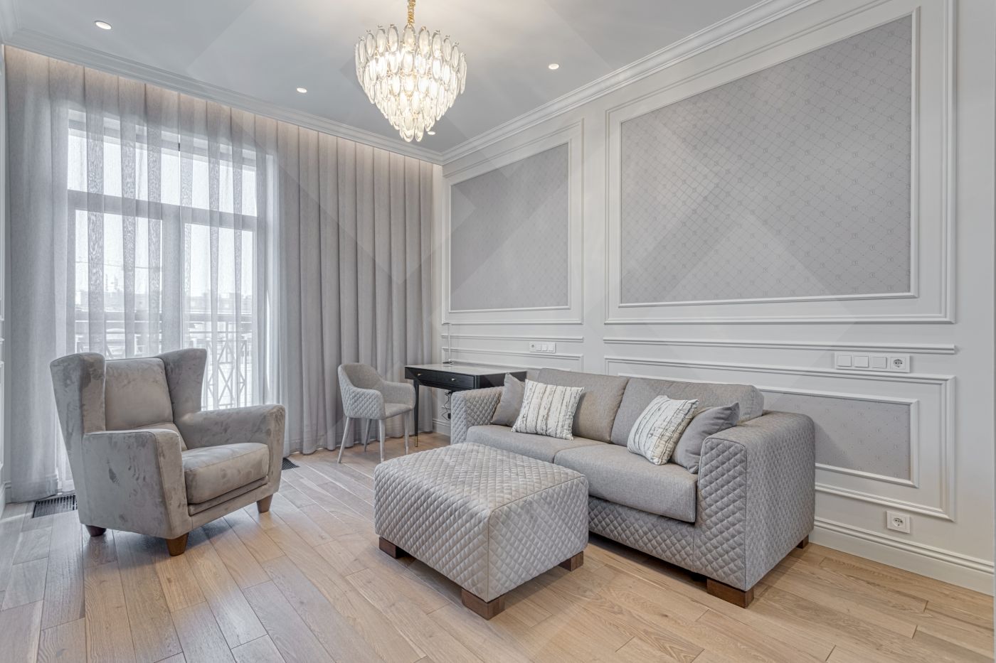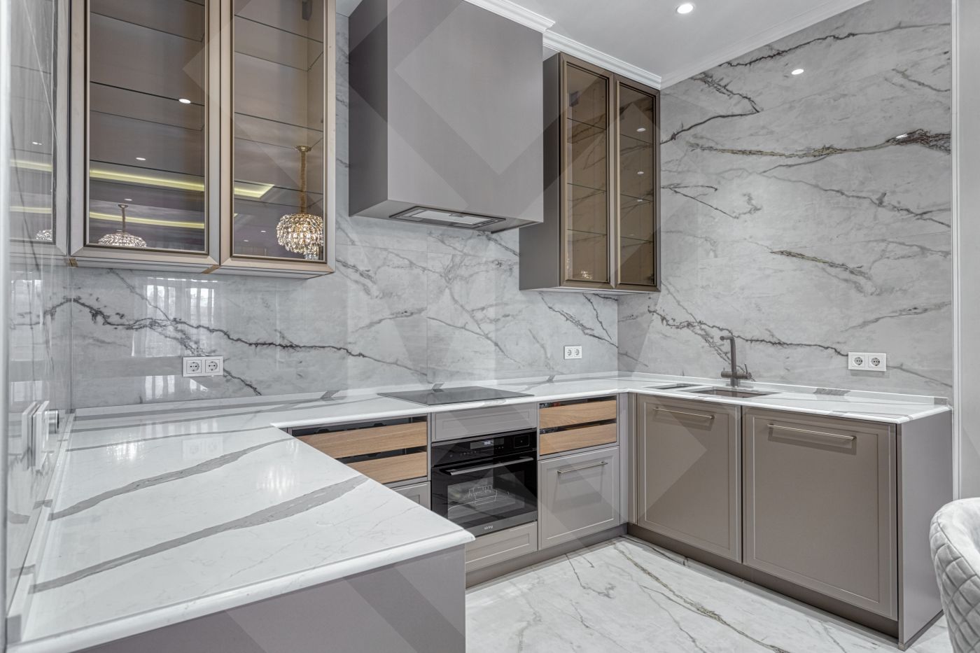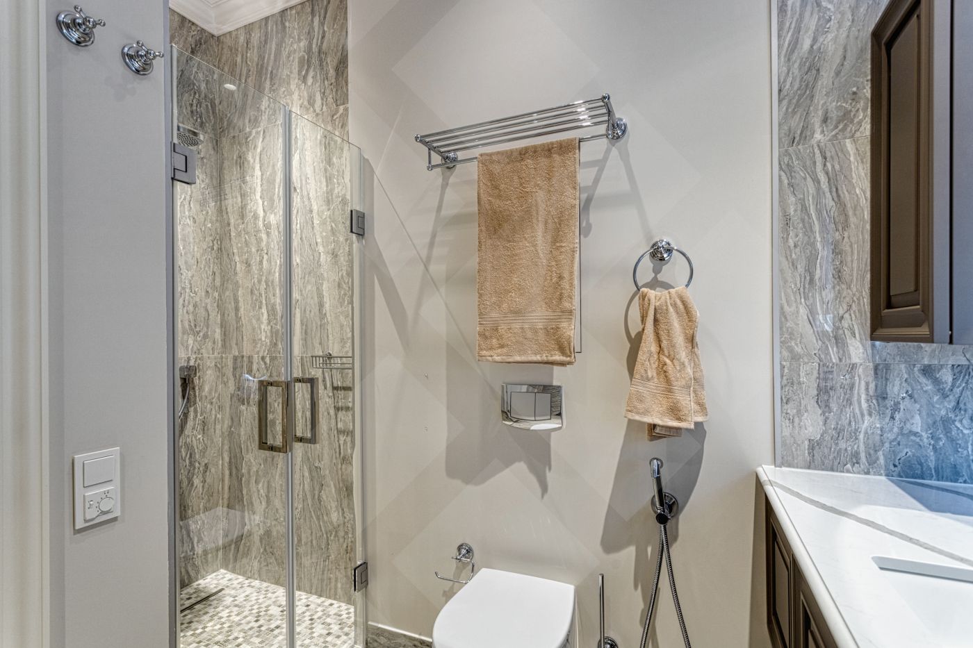 Планировка апартамента: гостиная-кухня, спальня с гардеробной и санузлом (ванна и душевая); кабинет (или еще одна спальня) с санузлом. Выполнен дизайнерский ремонт ремонт. Центральная система кондиционирования, полы с подогревом. Бытовая техника от ведущих мировых производителей стиральная машина с сушкой, индукционная варочная панель, телевизор 85 дюймов, домашний кинотеатр, и прочее. В стоимость входит одно машино-место в подземном паркинге.