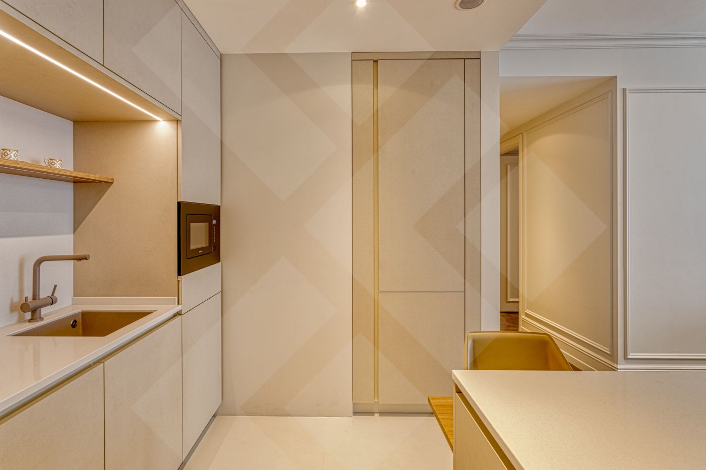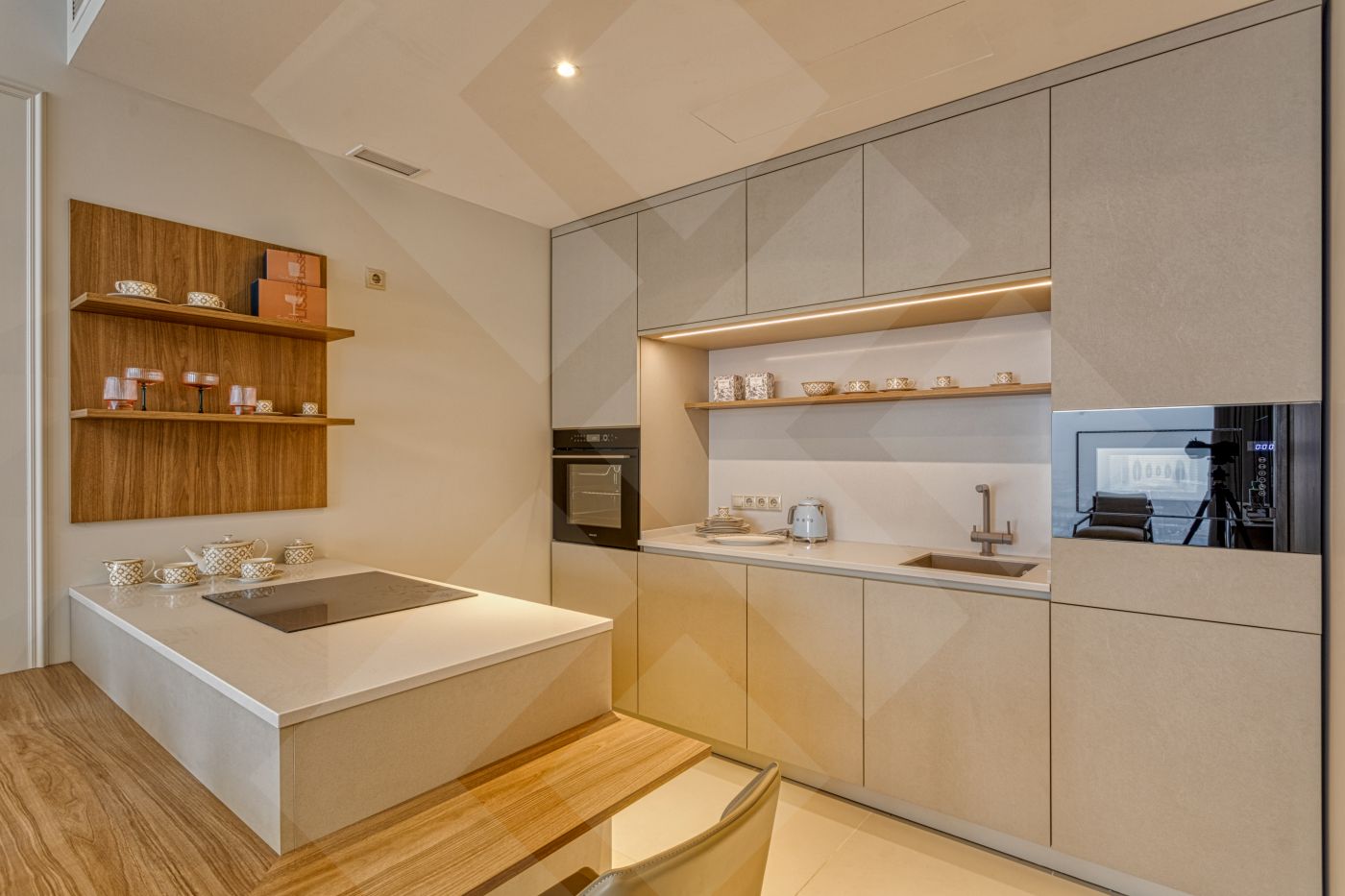 В наличии есть всё необходимое для жизни: холодильник с морозильной камерой, СВЧ, духовой шкаф, посудомоечная машина, индукционная варочная панель на 4 конфорки - немецкого бренда GRAUDE.