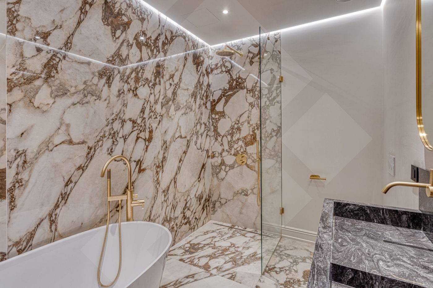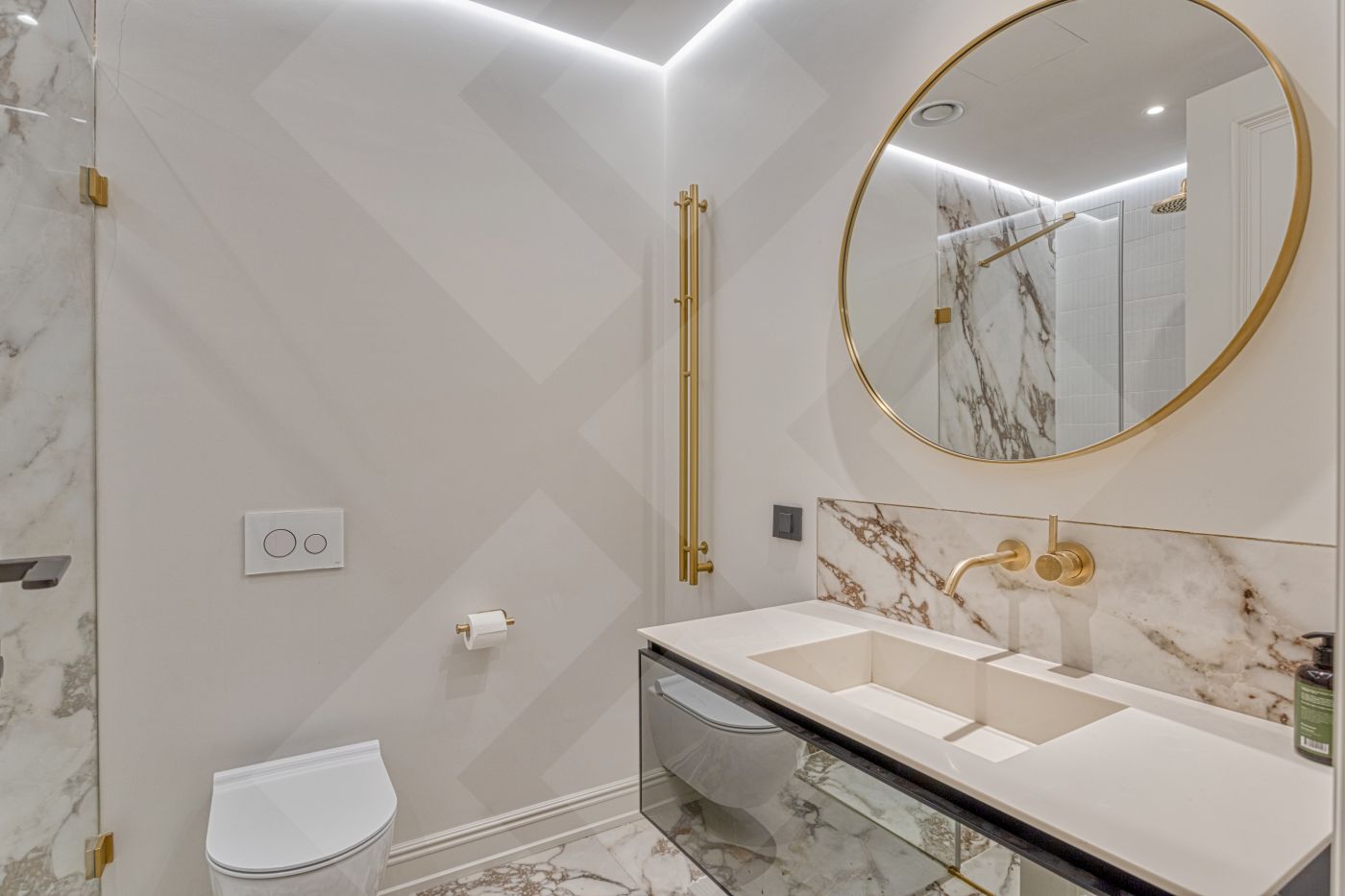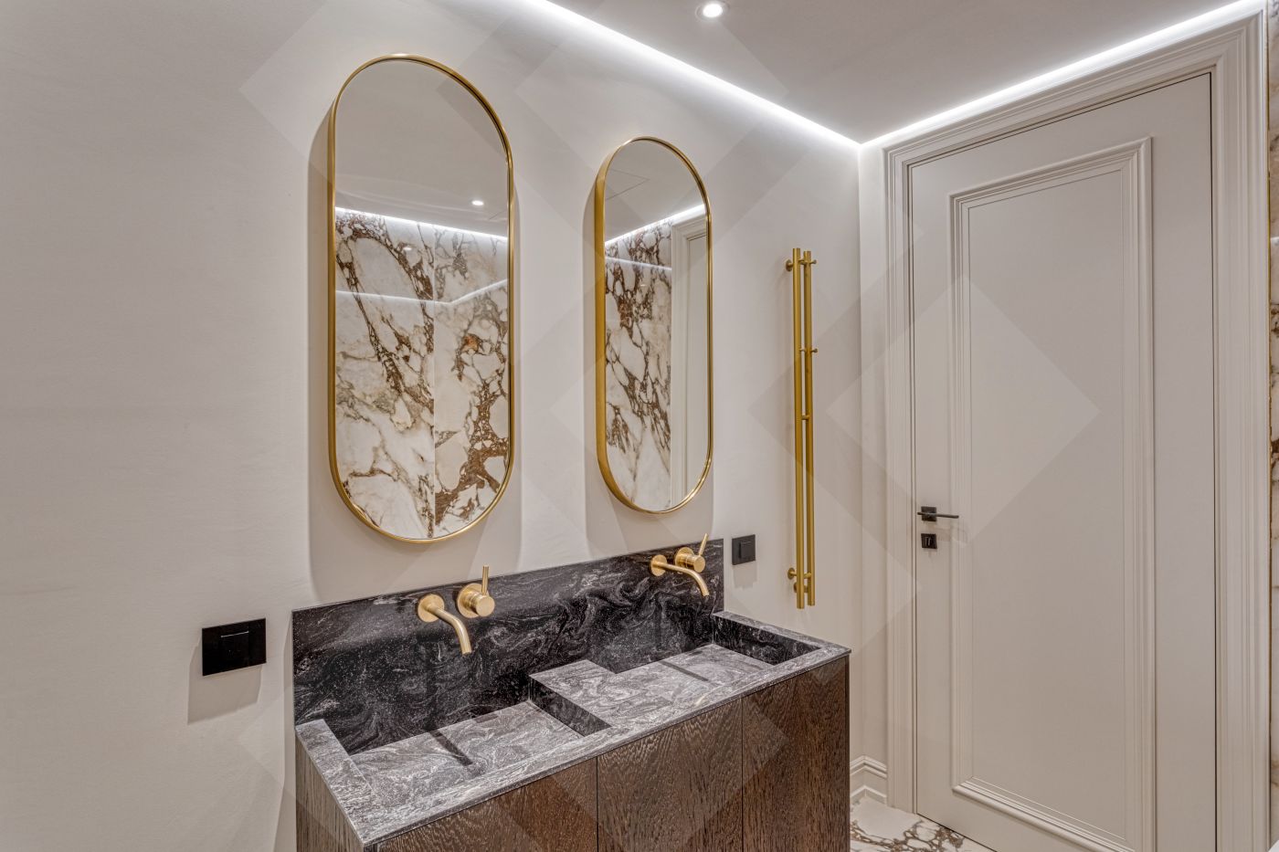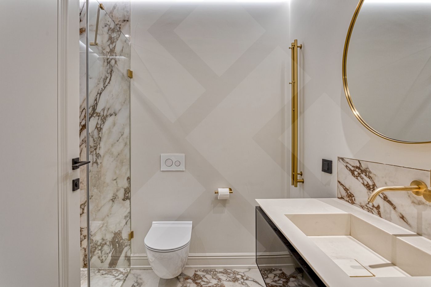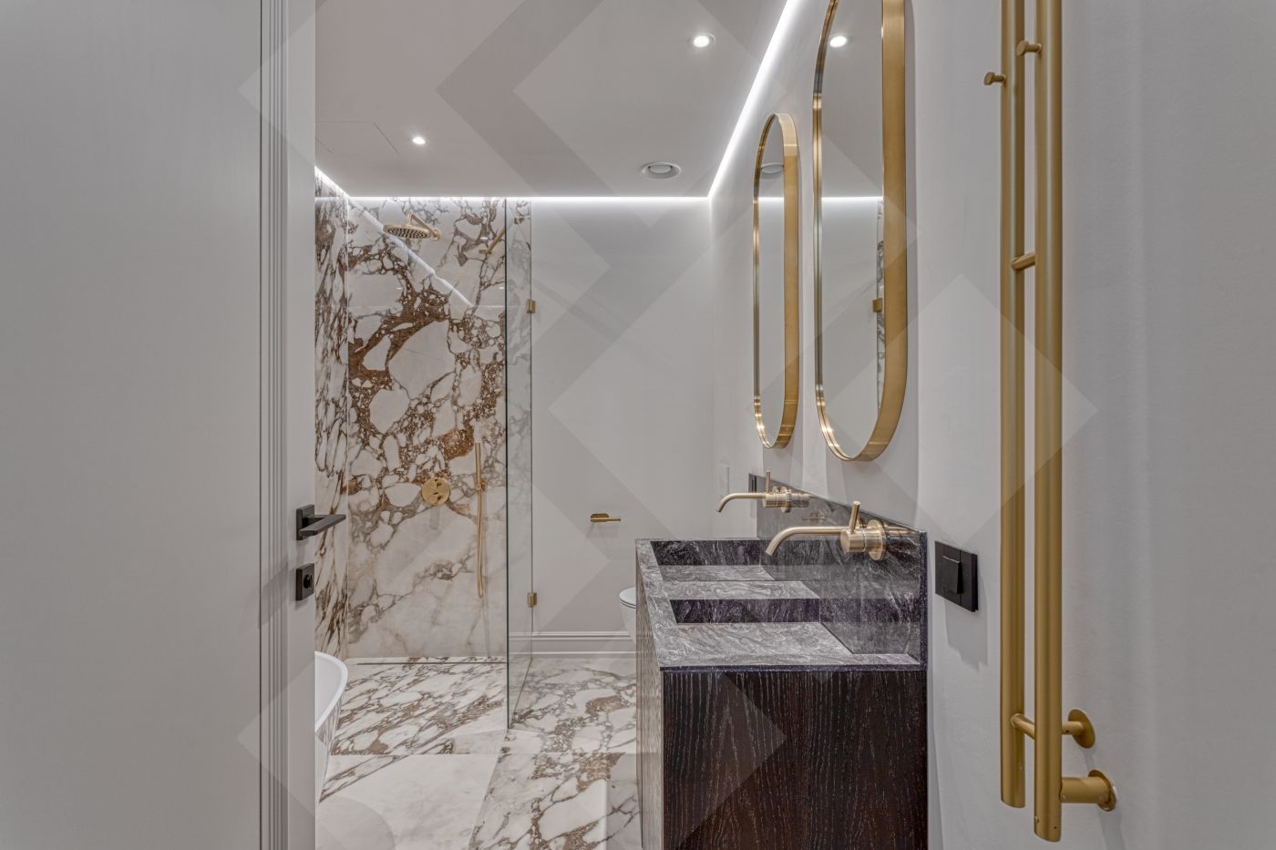 2 совмещённых санузла: 1 - гостевой с просторной душевой, 2 - в мастер-спальне с душевой и ванной.