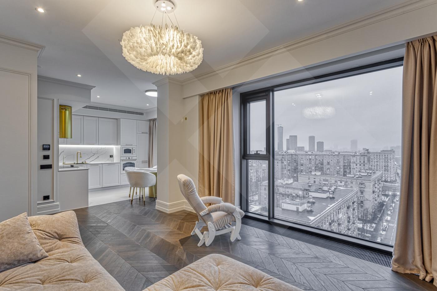 Видовые апартаменты в комплексе премиум-класса "Поклонная, 9". Апартаменты с готовой дизайнерской отделкой в светлых тонах расположены на 13 этаже. Просторная кухня-гостиная, две изолированные комнаты, одна из которых свободна от мебели ( прекрасно подойдет под кабинет или детскую комнату). Апартаменты полностью оборудованы всех необходимой бытовой техникой, включая посудомоечную машину и бойлер. Мастер-спальня со своим с/у (с ванной), второй с\у оборудован душевой кабиной. Панорамные окна с видом на Сити добавляют пространства и света этим уютным апартаментам.