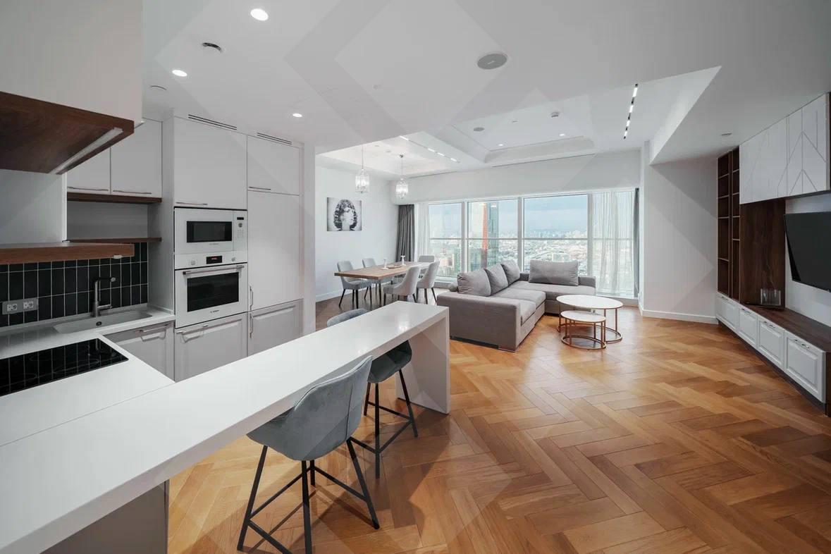 Предлагаются двухкомнатные апартаменты с панорамным видом на север города в башне «Меркурий Тауэр» на 42 этаже, общей площадью 90 кв.м.
