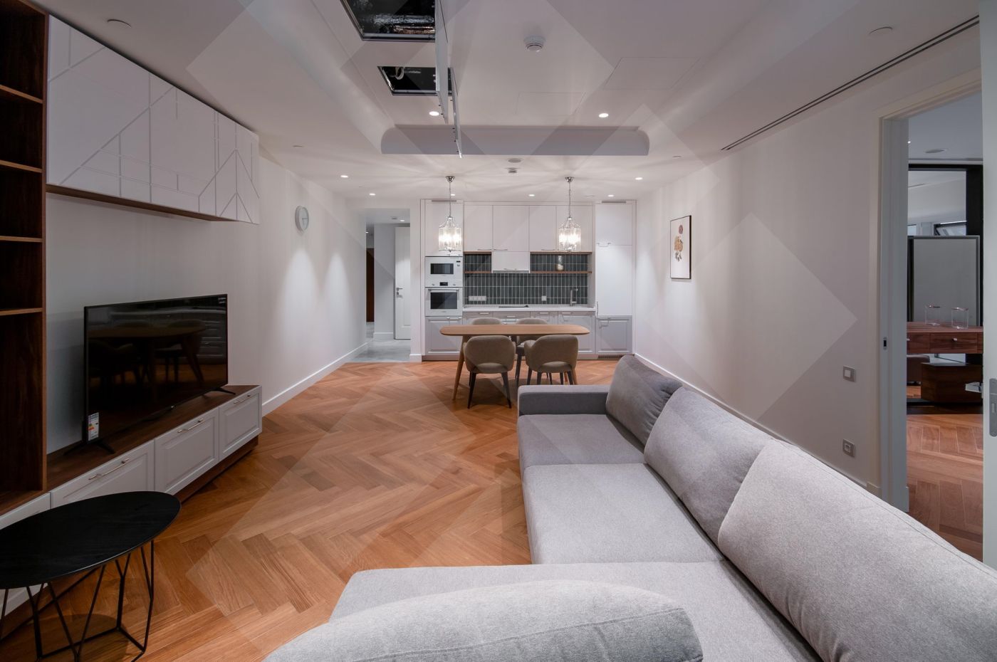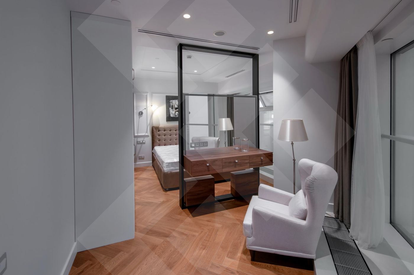 Апартаменты состоят из: просторной кухни-столовой-гостиной, одной спальни, двух санузлов (полноценный и гостевой), гардеробной.