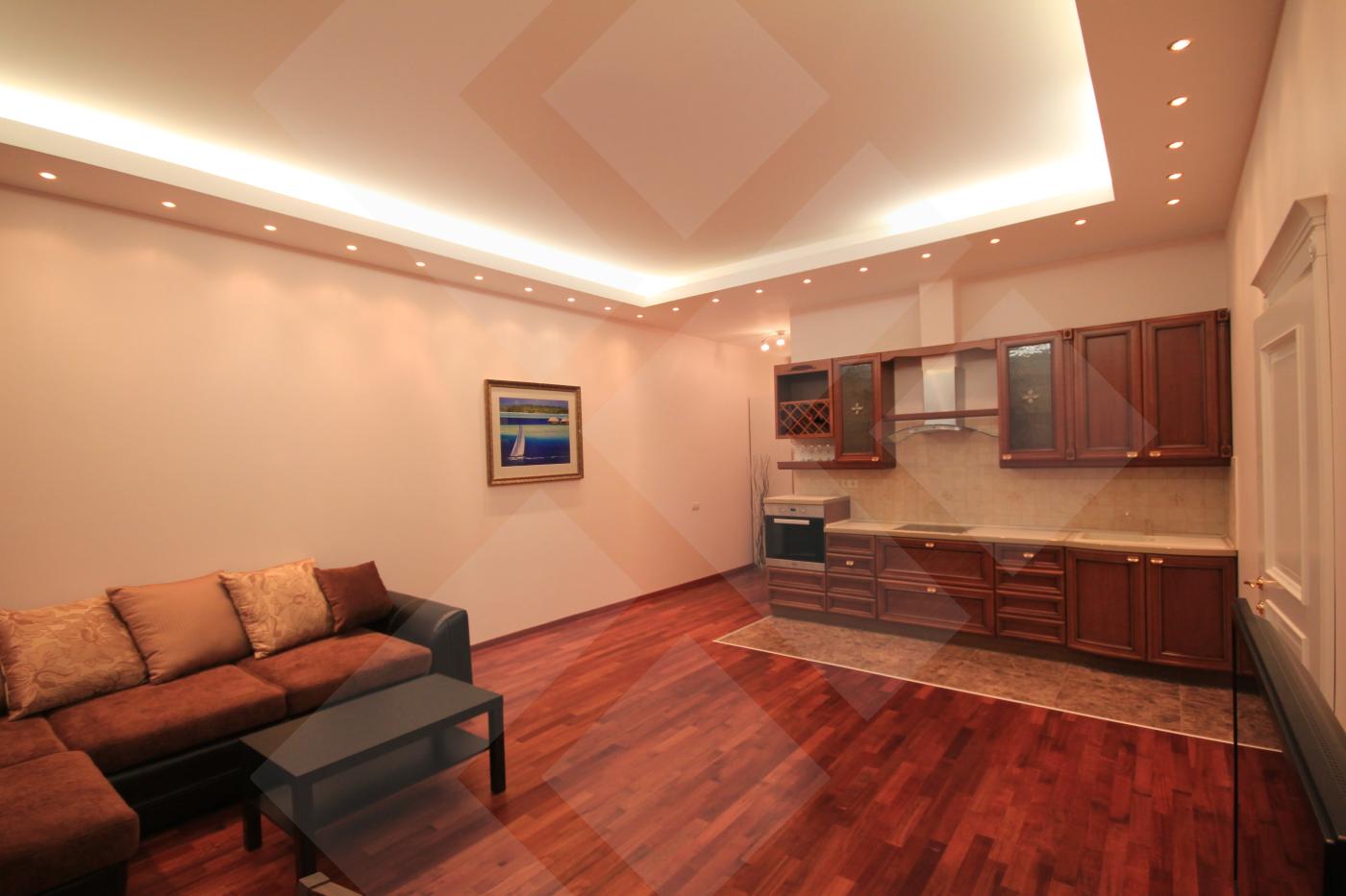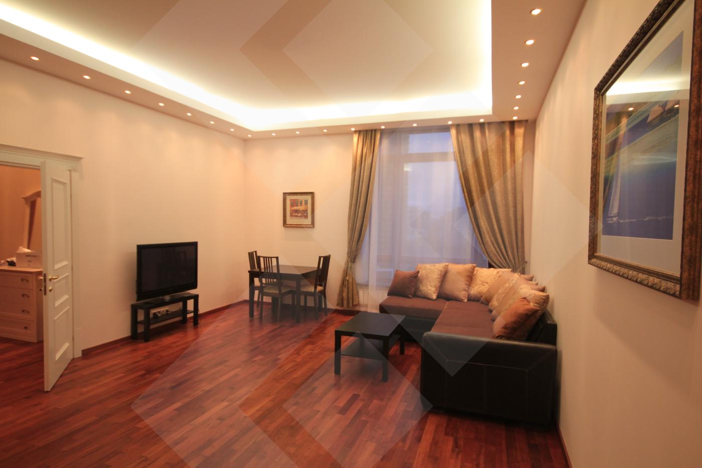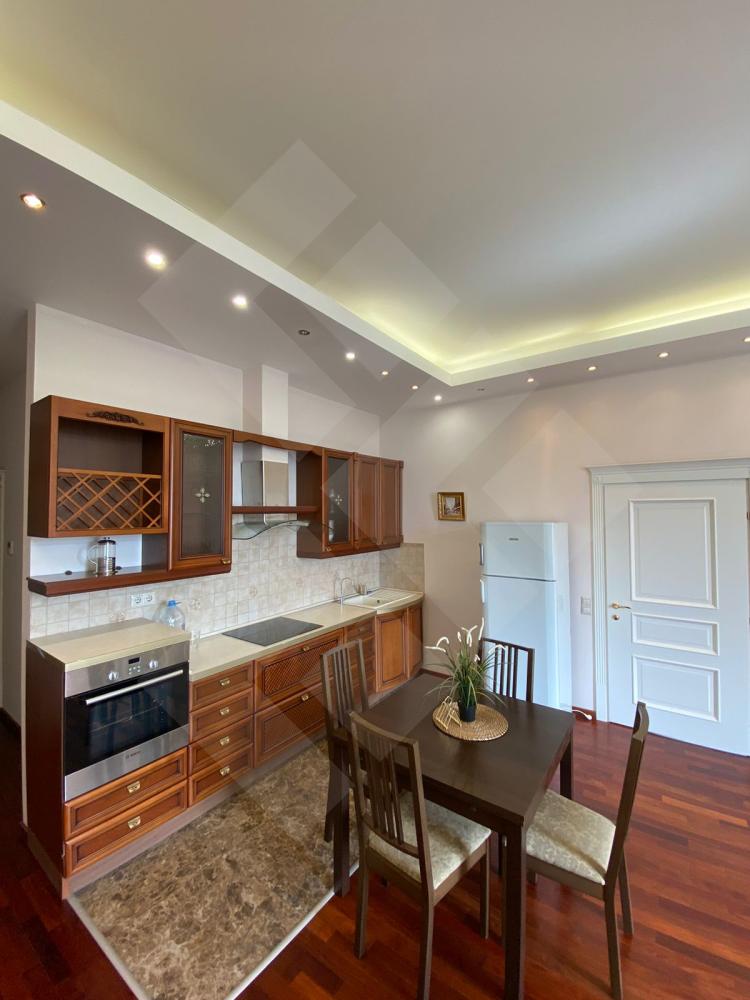 Квартира полностью меблирована и укомплектована всей необходимой бытовой техникой: стиральная машина с сушкой, посудомоечная машина, холодильник, канальное кондиционирование, два телевизора, высокоскоростной интернет.