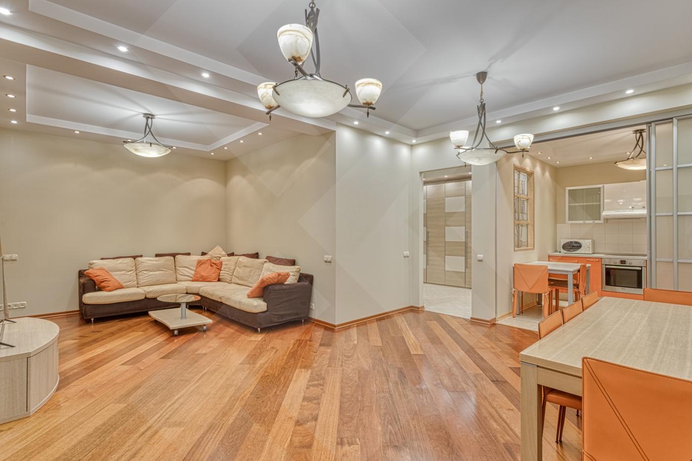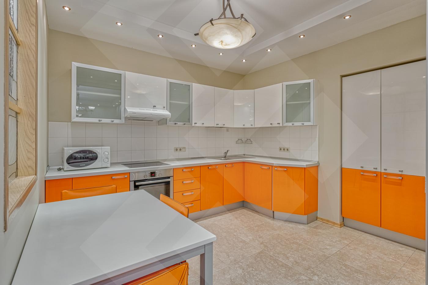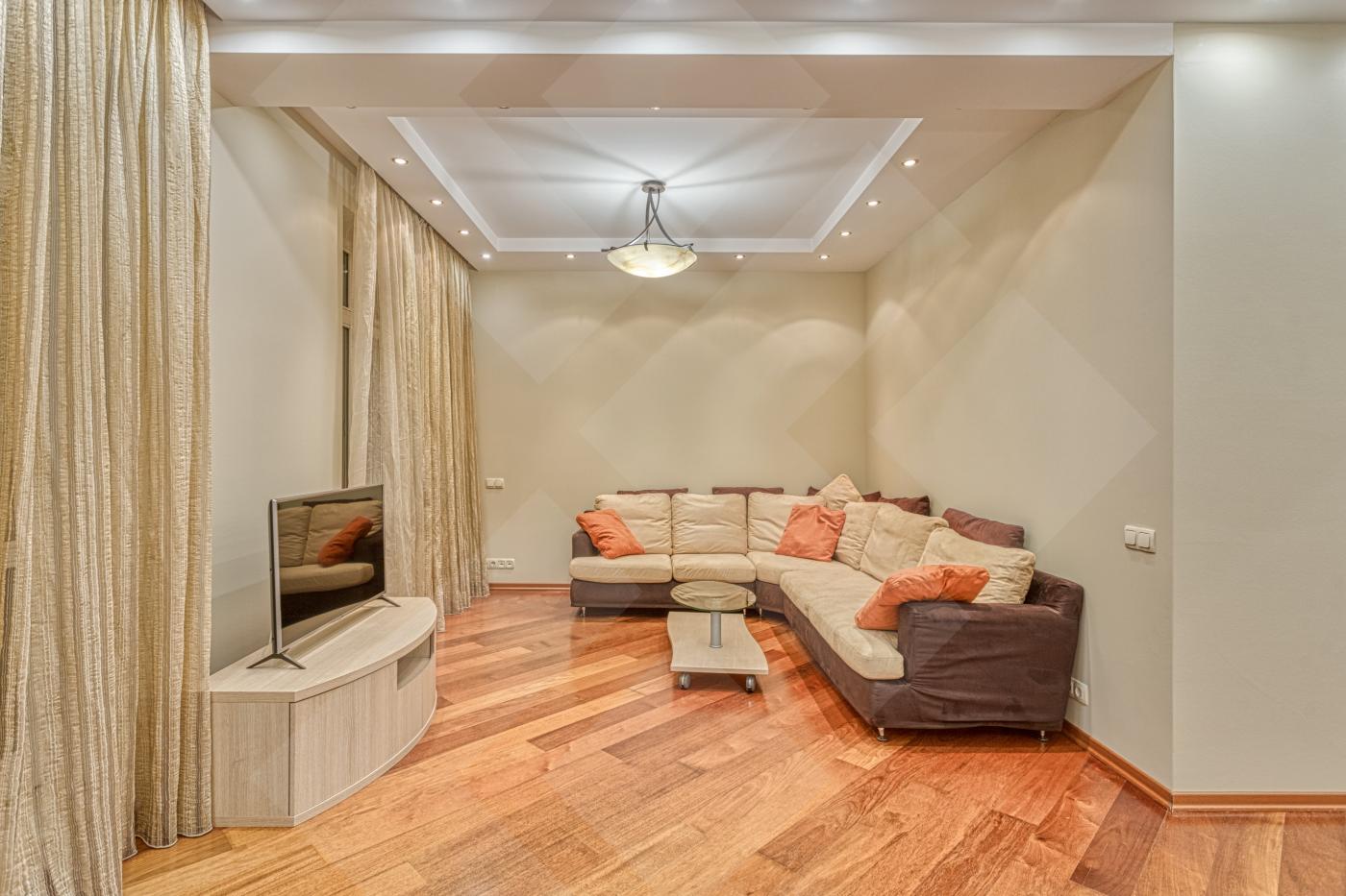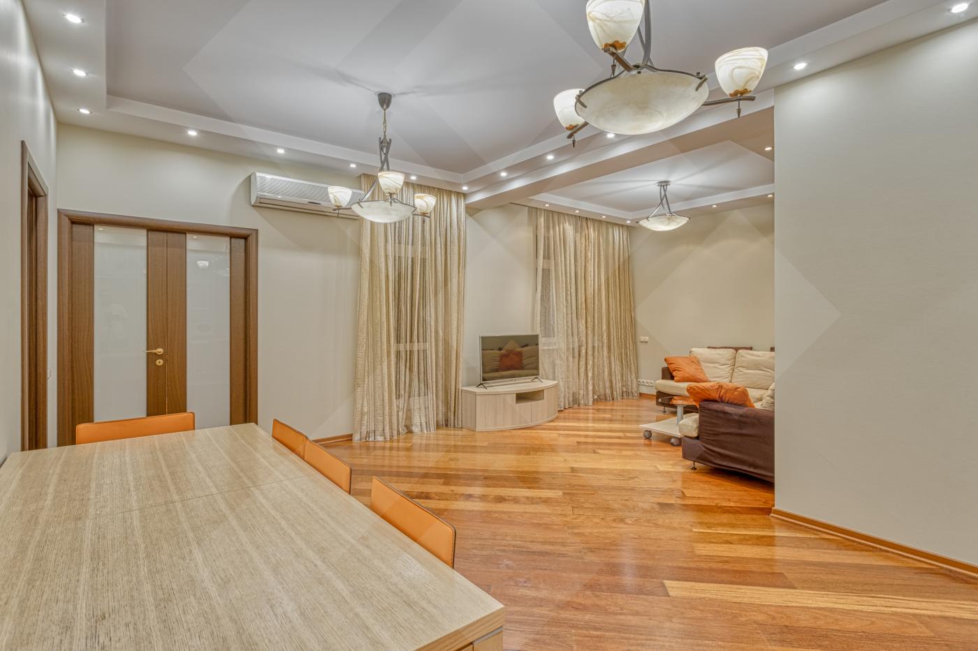 Площадь квартиры 119 кв.м. Удобная планировка, окна выходят во внутренний двор. Квартира меблирована, имеется вся необходимая бытовая техника, установлено кондиционирование во всех помещениях.