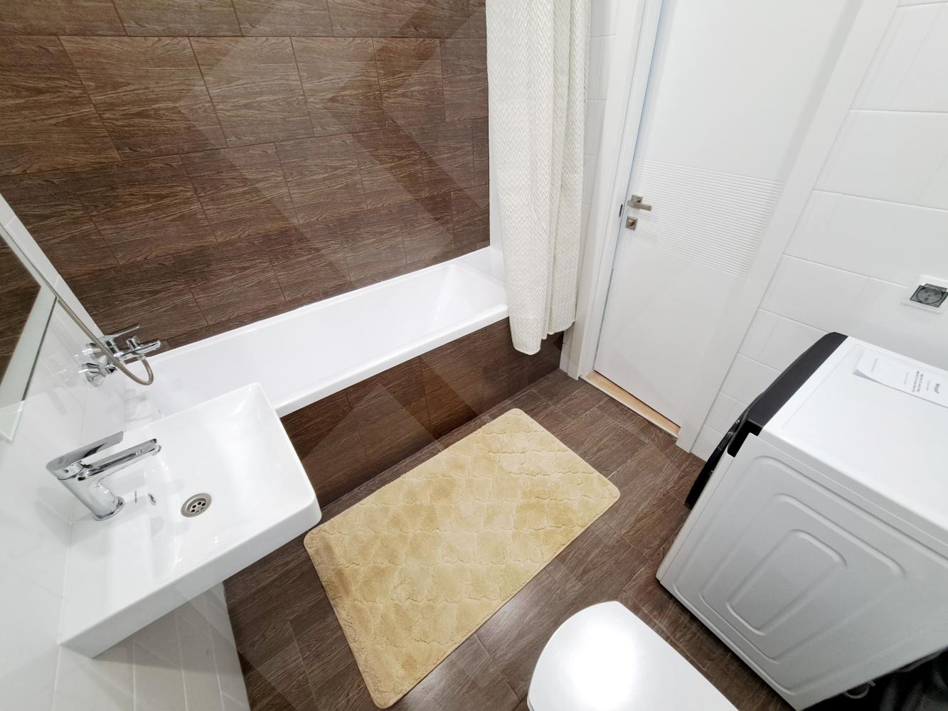 - Ванная комната (раковина, туалет, ванна, зеркало со шкафчиком, стиральная машина)
