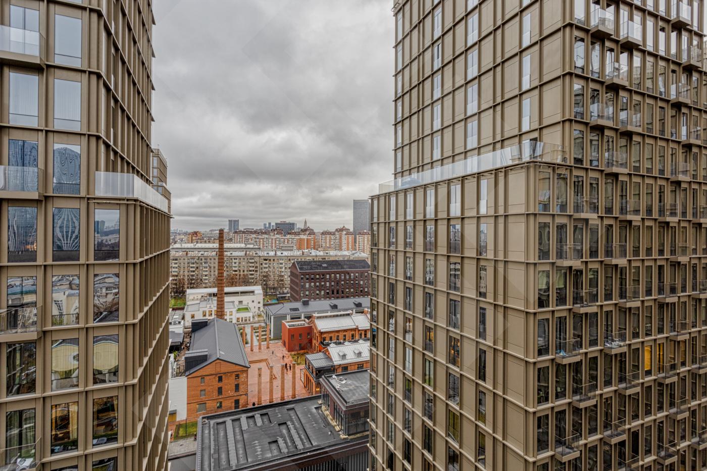 Светлая и уютная квартира с окнами на две стороны света, которая наполнена солнечным светом на протяжении всего дня. Из окон открываются виды на кирпичные здания квартала и Москва Сити.