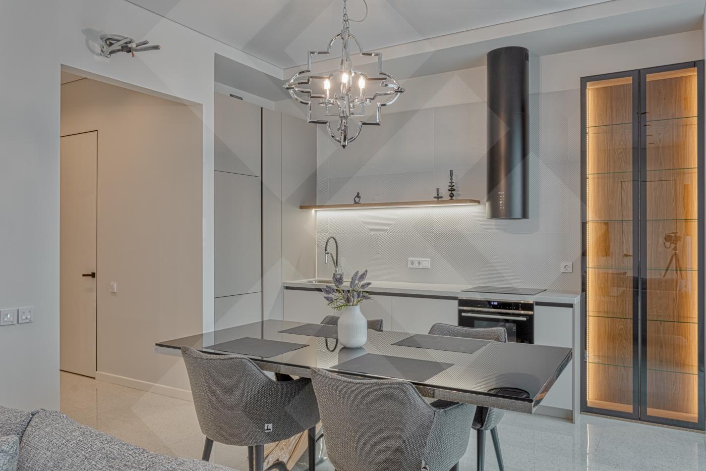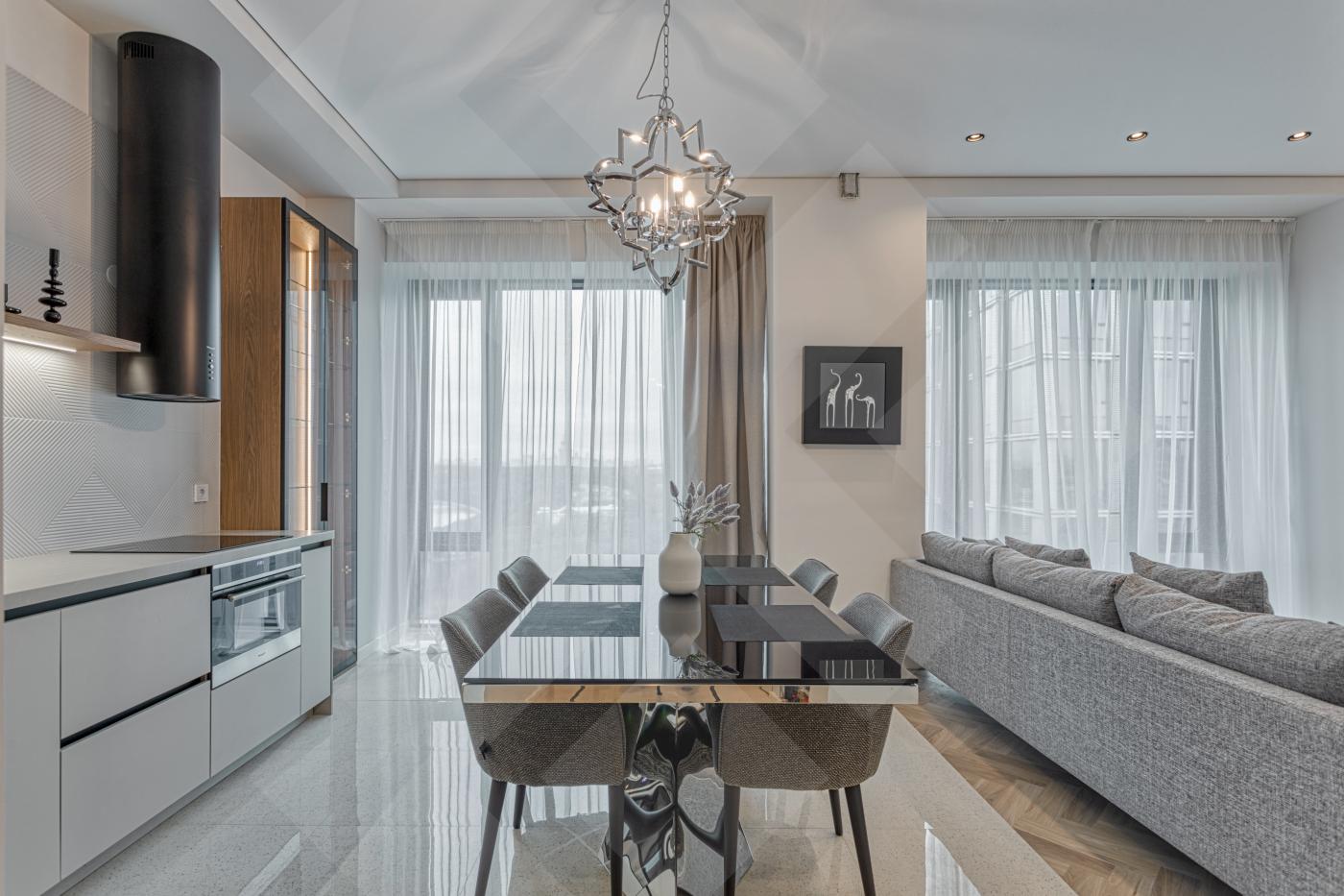 В квартире выполнен дизайнерский ремонт. Полностью оборудована всей необходимой техникой и мебелью. Установлены кондиционеры. Панорамные окна в пол!