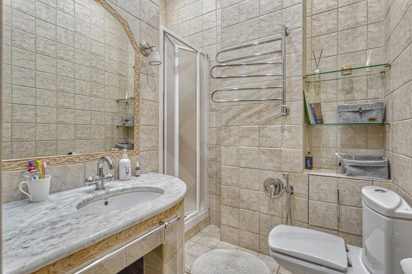 Планировка: 4 изолированые комнаты, гардеробная, 2 с/у ( с ванной и душивой кабиной), гостиная с обеденной зоной, кухня.