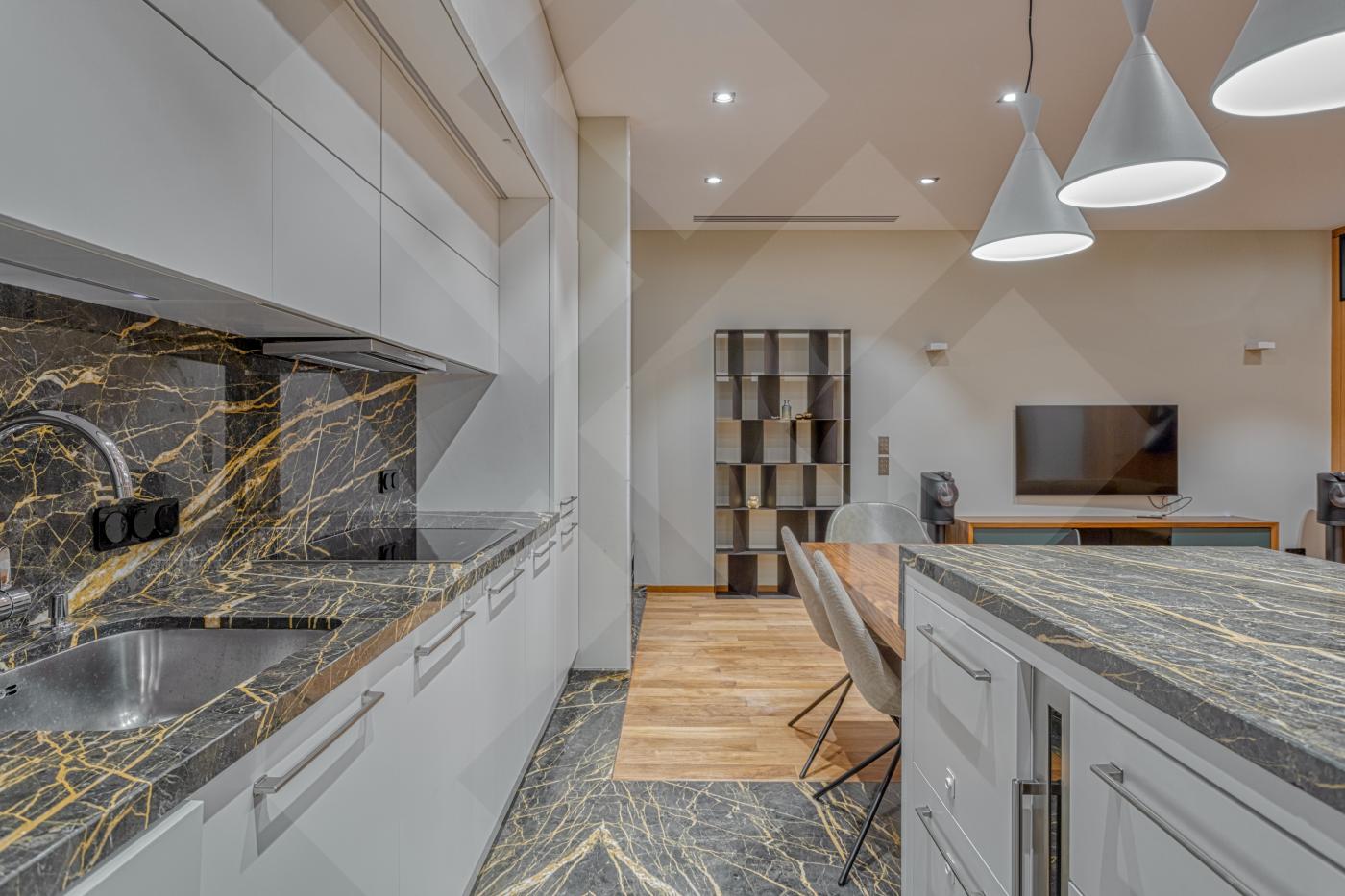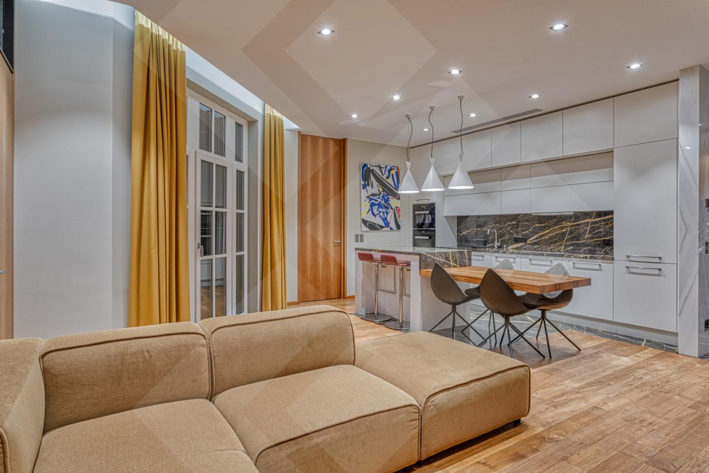 Предлагается в аренду элегантная трёхкомнатная квартира с дизайнерским оформлением, расположенная в жилом комплексе премиум-класса «Итальянский квартал».